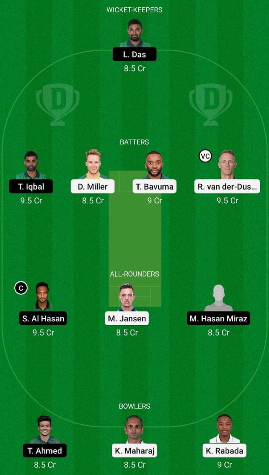 Fantasy Suggestion #1: Litton Das, Rassie van der Dussen, David Miller, Tamim Iqbal, Temba Bavuma, Mehidy Hasan Miraz, Shakib Al Hasan, Marco Jansen, Taskin Ahmed, Keshav Maharaj, Kagiso Rabada.