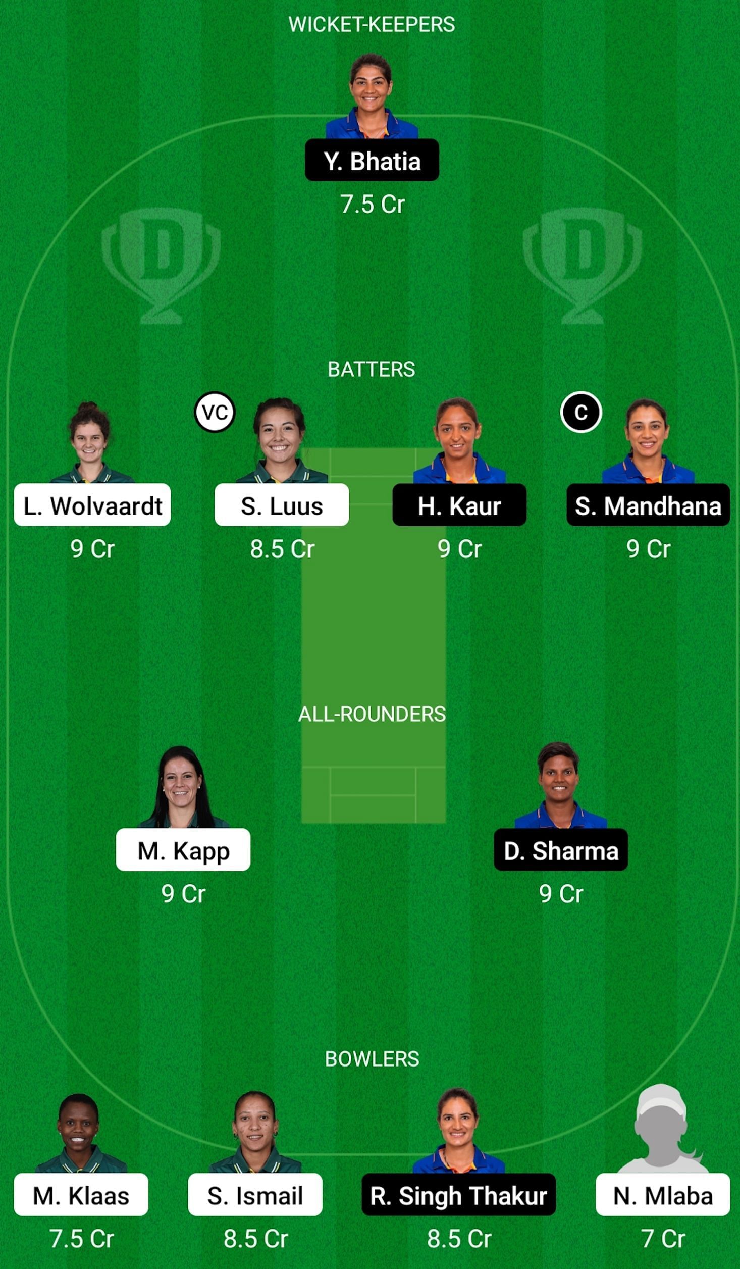 Bowlers: M Klaas, S Ismail, Renuka Singh Thakur, N Mlaba
