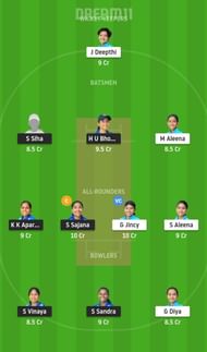 George Jincy (c), J S Deepthi (wk), K R Sneha, M Abina, Aleena M P, Devika Krishna Kumar, Aleena Surendran, Sruthi TP, Gireesh Diya, Anusree Anilkumar, V J Joshitha