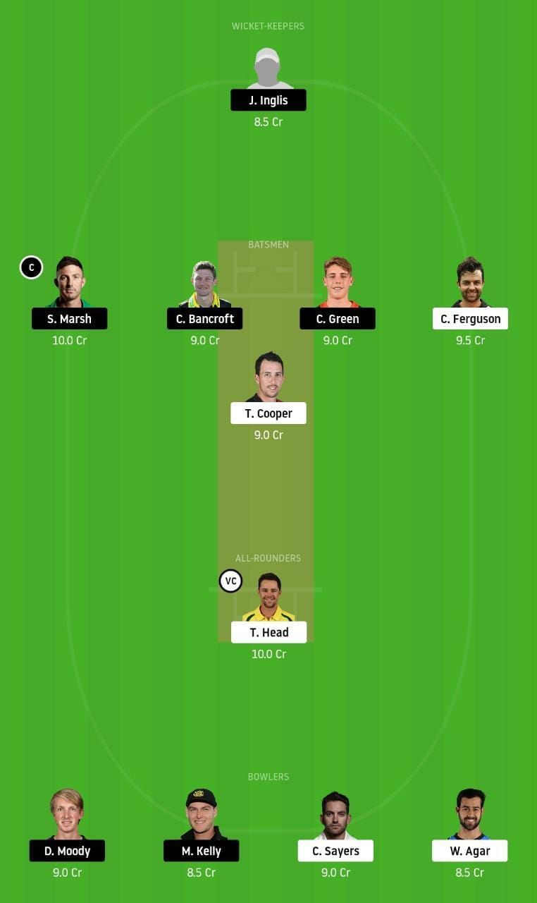 Fantasy Suggestion #1: Josh Inglis, Shaun Marsh, Cameron Bancroft, Cameron Green, Callum Ferguson, Tom Cooper, Travis Head, David Moody, Matt Kelly, Chadd Sayers and Wes Agar.