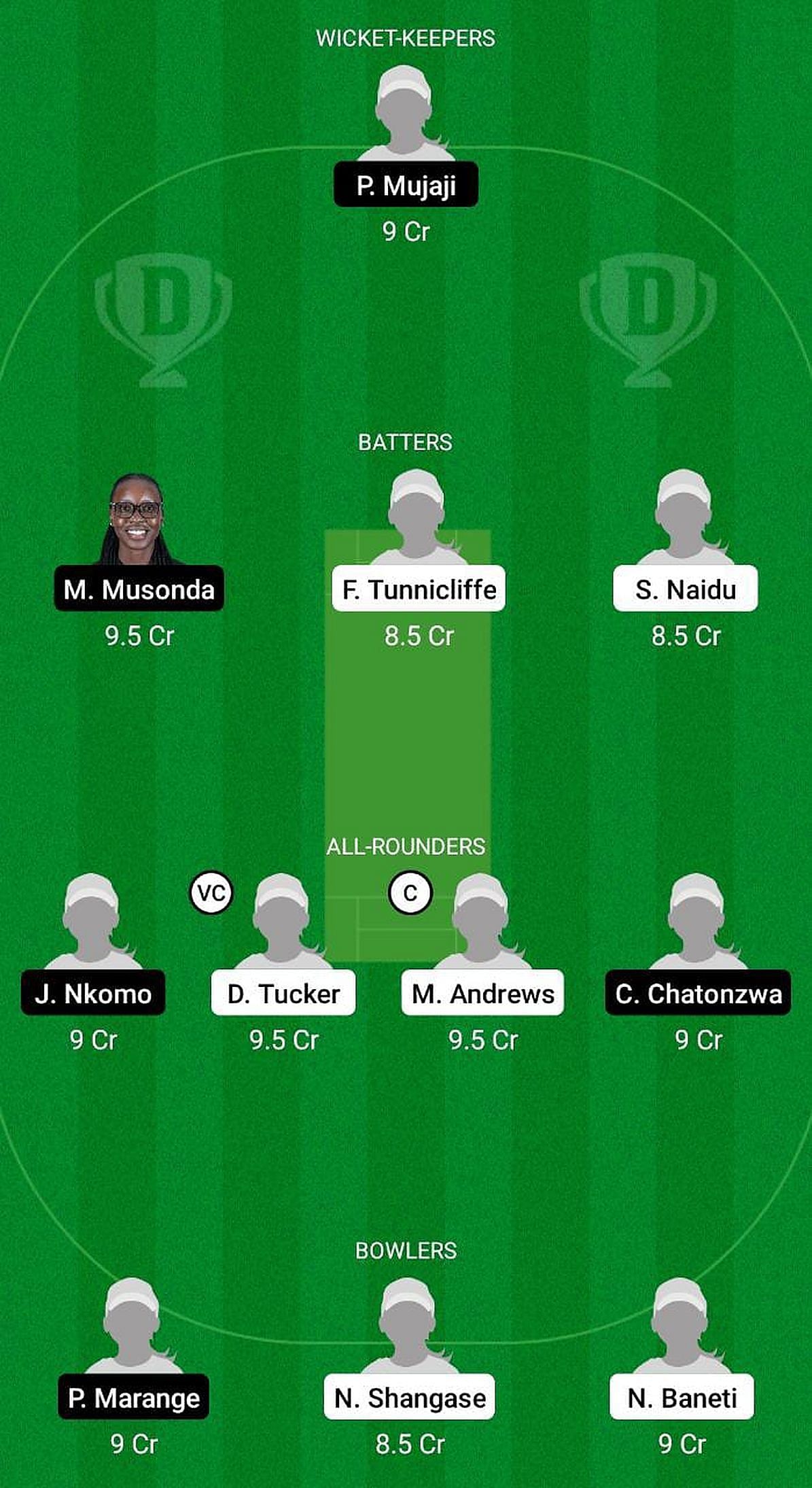 Kelis Ndlovu, Sharne Mayers, Chipo Mugeri-Tiripano, Mary-Anne Musonda (c), Christabel Chatonzwa, Pellagia Mujaji (wk), Josephine Nkomo, Loreen Tshuma, Precious Marange, Nomvelo Sibanda, Audrey Mazvishaya.