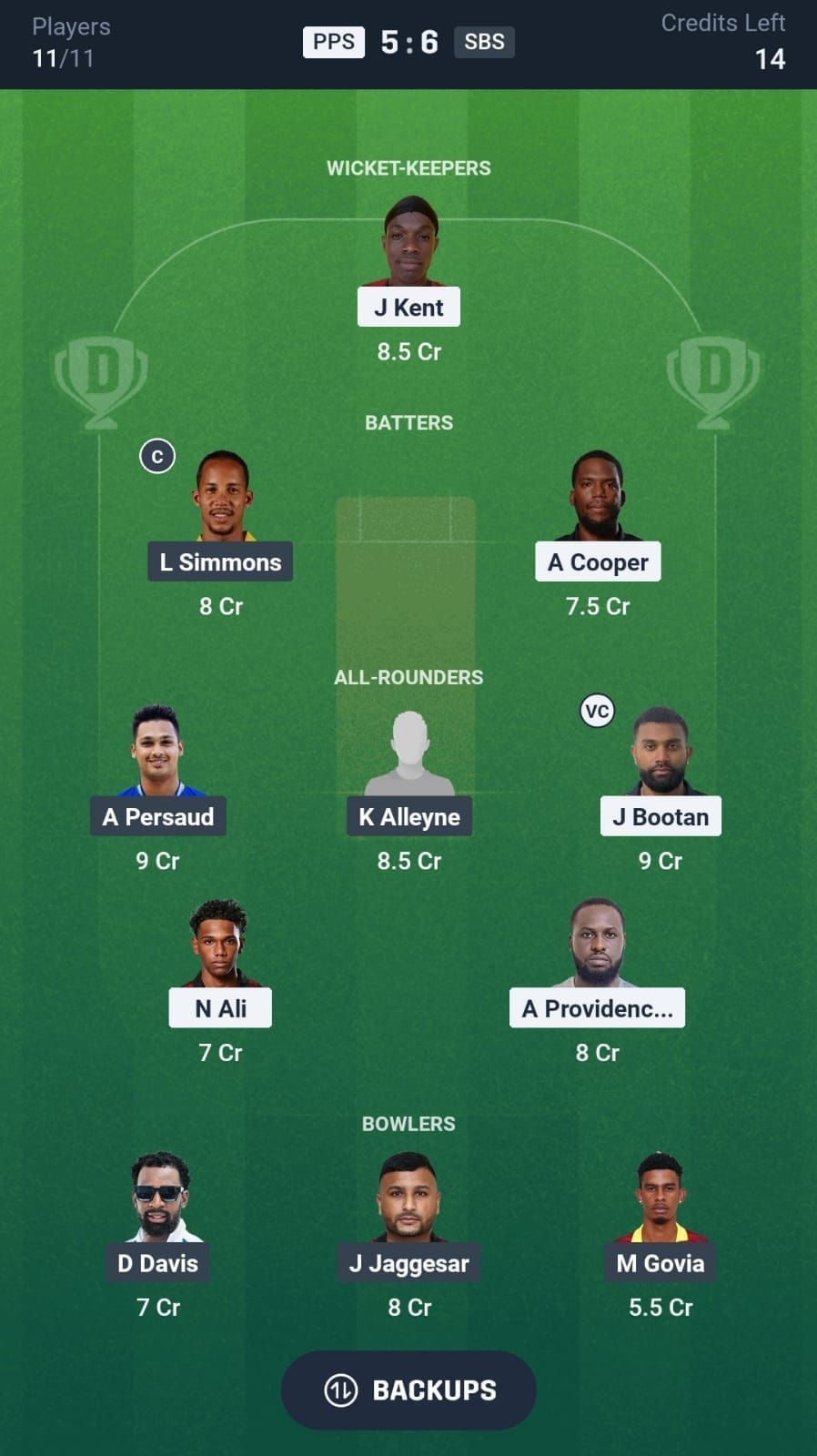 K Alleyne and J Bootan are the best all-rounder picks for the Dream11 team. Both players are crucial for today's match. J Bootan will bat in the top order and bowl a good number of overs in today's match. He has smashed 198 runs and taken 6 wickets in just eight matches. A Persaud is another good all-rounder for today's nail-biting match.