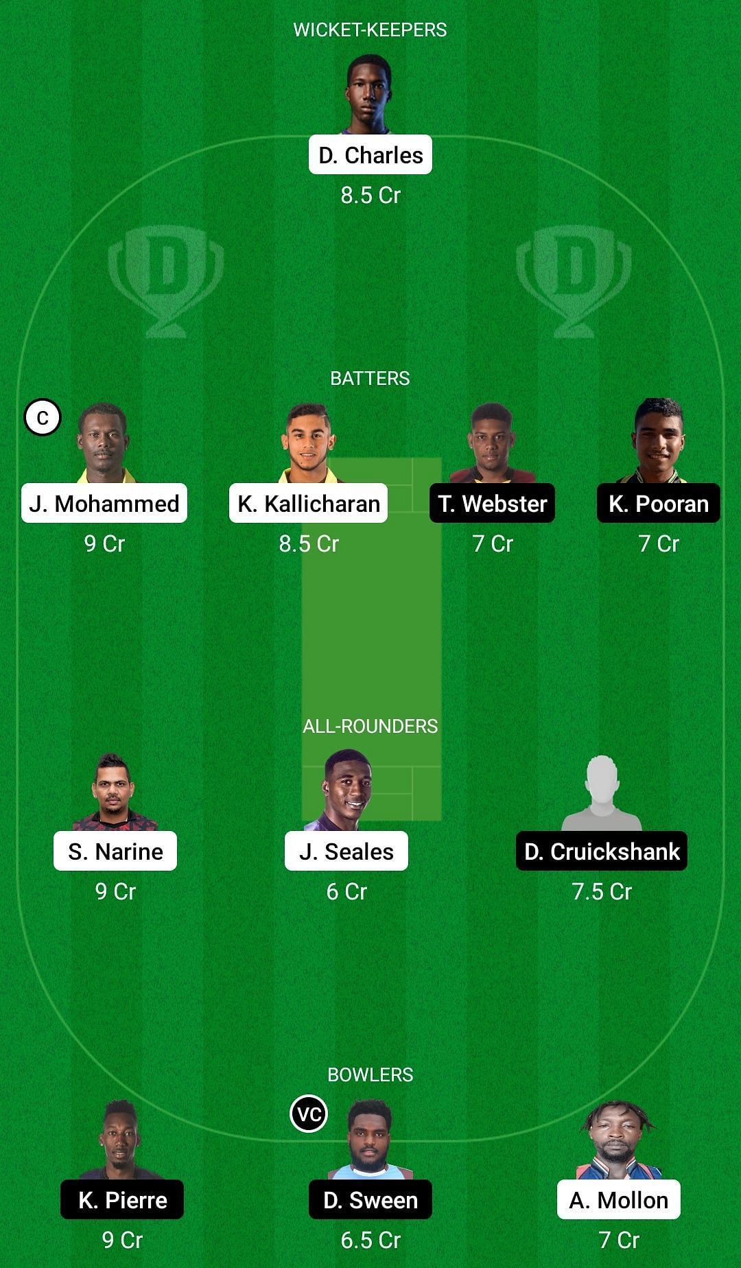 Bowlers: Khary Pierre, Dexter Sween (vc), Akheel Mollon