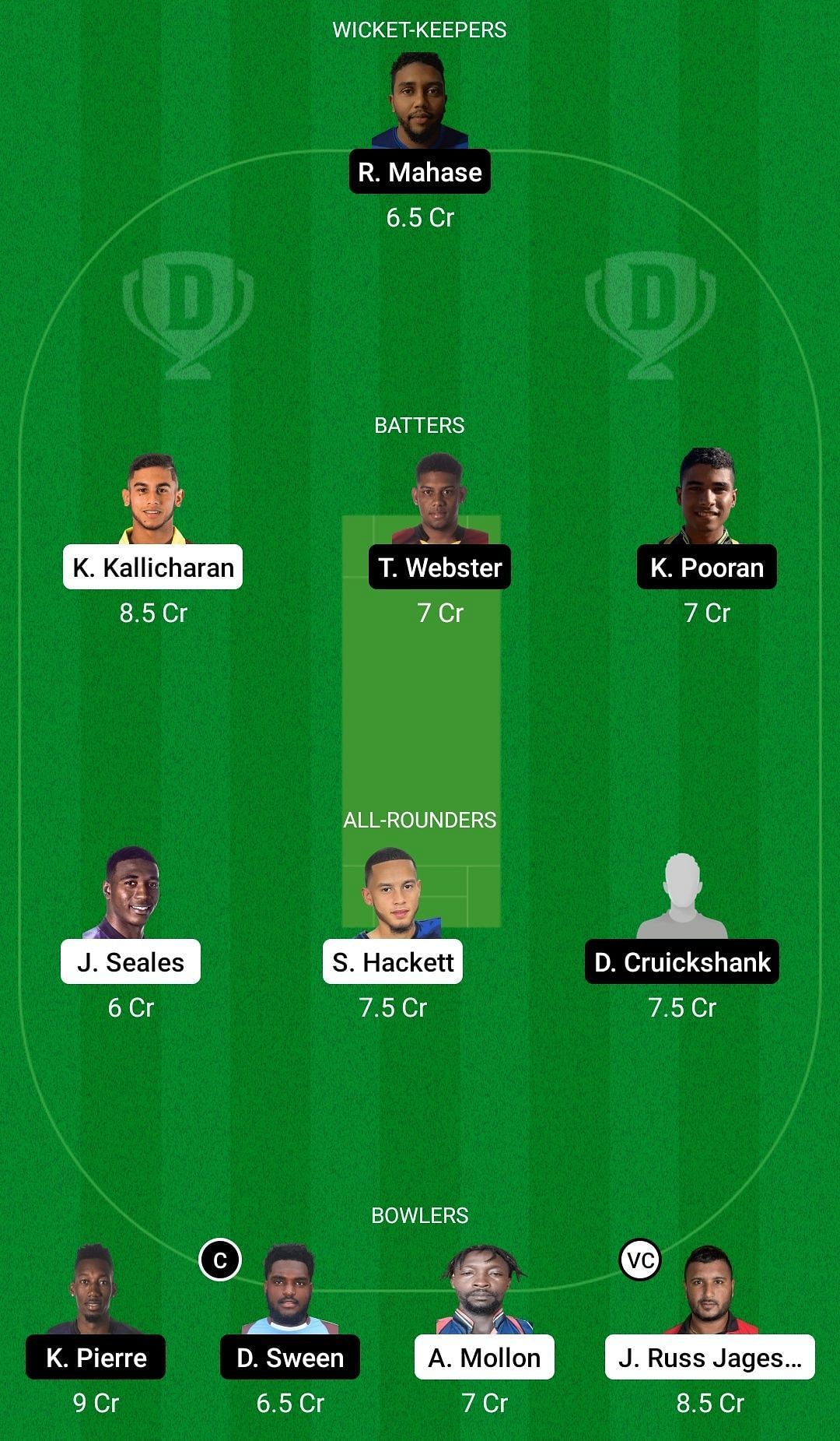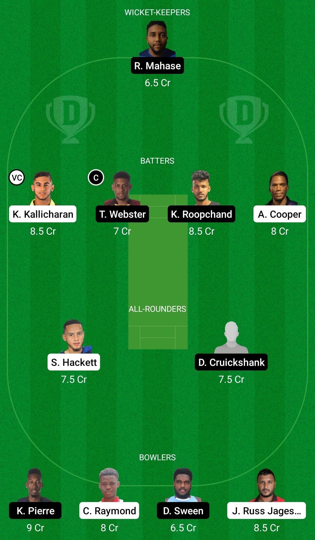 All-rounders and top-order batters from both sides will be the key in this game. Thus, the likes of Kirstan Kallicharan, Tion Webster, Dexter Sween and Jon Russ Jageesar will be the ones to watch out for.