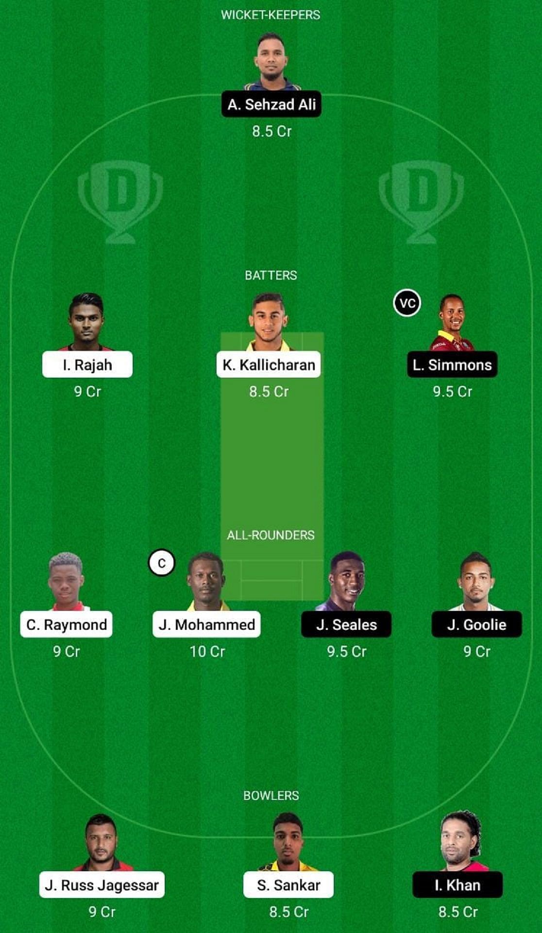 Fantasy Suggestion #2: A Sehzad Ali, L Simmons, K Kalicharan, I Rajah, J Mohammed, C Raymond, J Goolie, S Sankar, R Jagessar, I Khan, M Richards