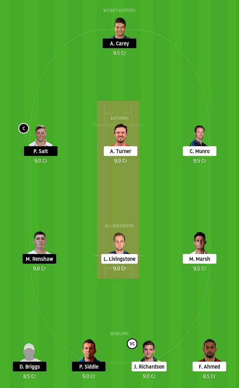 Fantasy Suggestion #1: Alex Carey, Ashton Turner, Colin Munro, Phil Salt, Mitchell Marsh, Matt Renshaw, Liam Livingstone, Peter Siddle, Danny Briggs, Jhye Richardson and Fawad Ahmed.