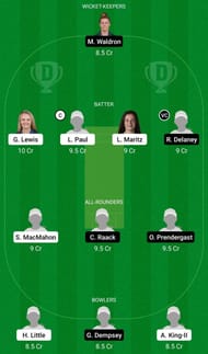 Scorchers Women: Gaby Lewis (c), Lara Maritz, Sophie MacMahon, Shauna Kavanagh (wk), Leah Paul, Caoimhe McCann, Jenny Sparrow, Ashlee King, Anna Kerrison, Hannah Little, Coulter Reilly
