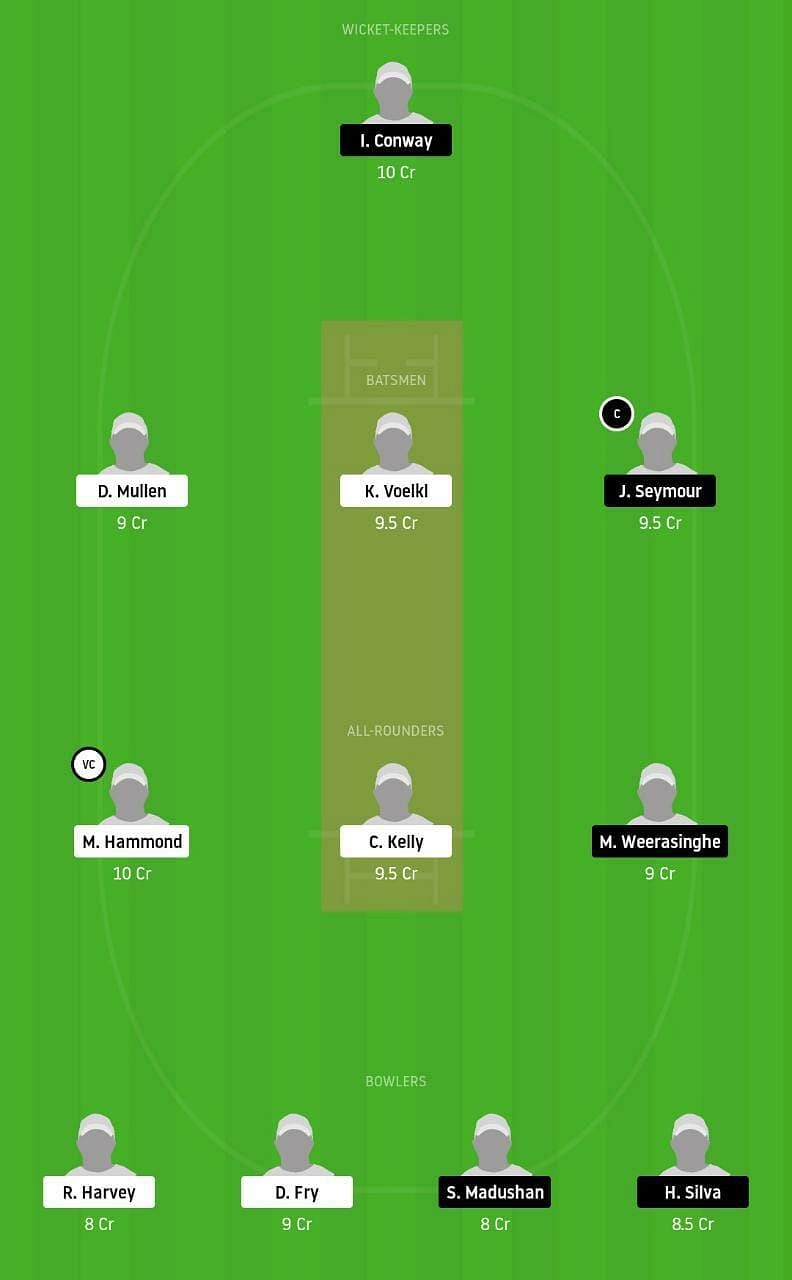 Fantasy Suggestion #1: I Conway, J Seymour, K Voelkl, D Mullen, C Kelly, M Weerasinghe, M Hammond, S Madushan, D Fry, R Harvey, H Silva