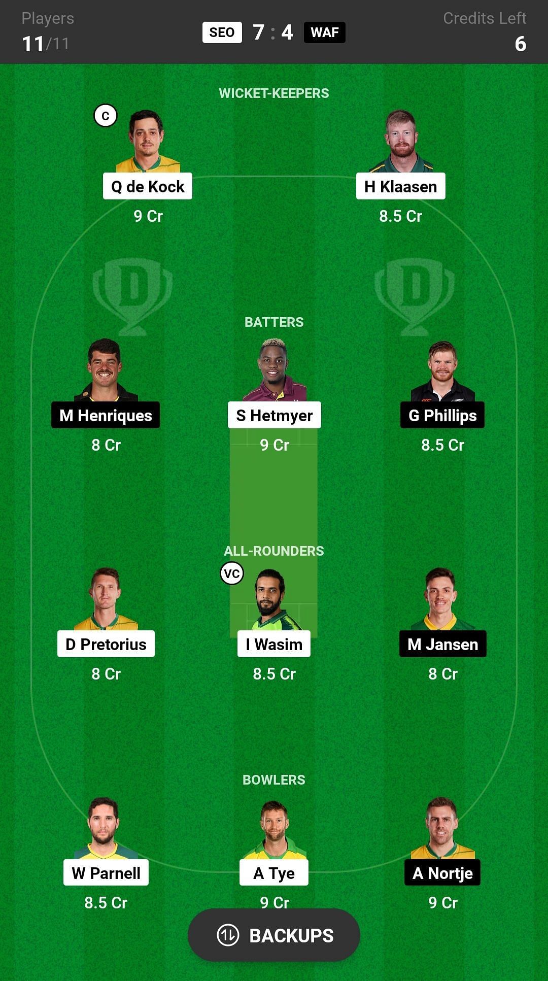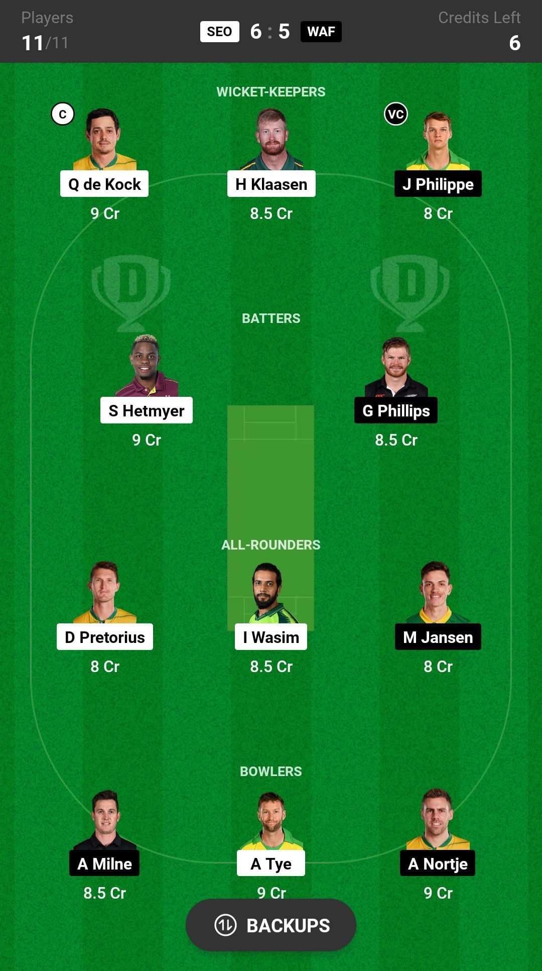 M Jansen and I Wasim are the best all-rounder picks for the Dream11 team as they are batting in the top order and also completing their quota of overs. D Pretorius is another good pick for today's Dream11 team.
