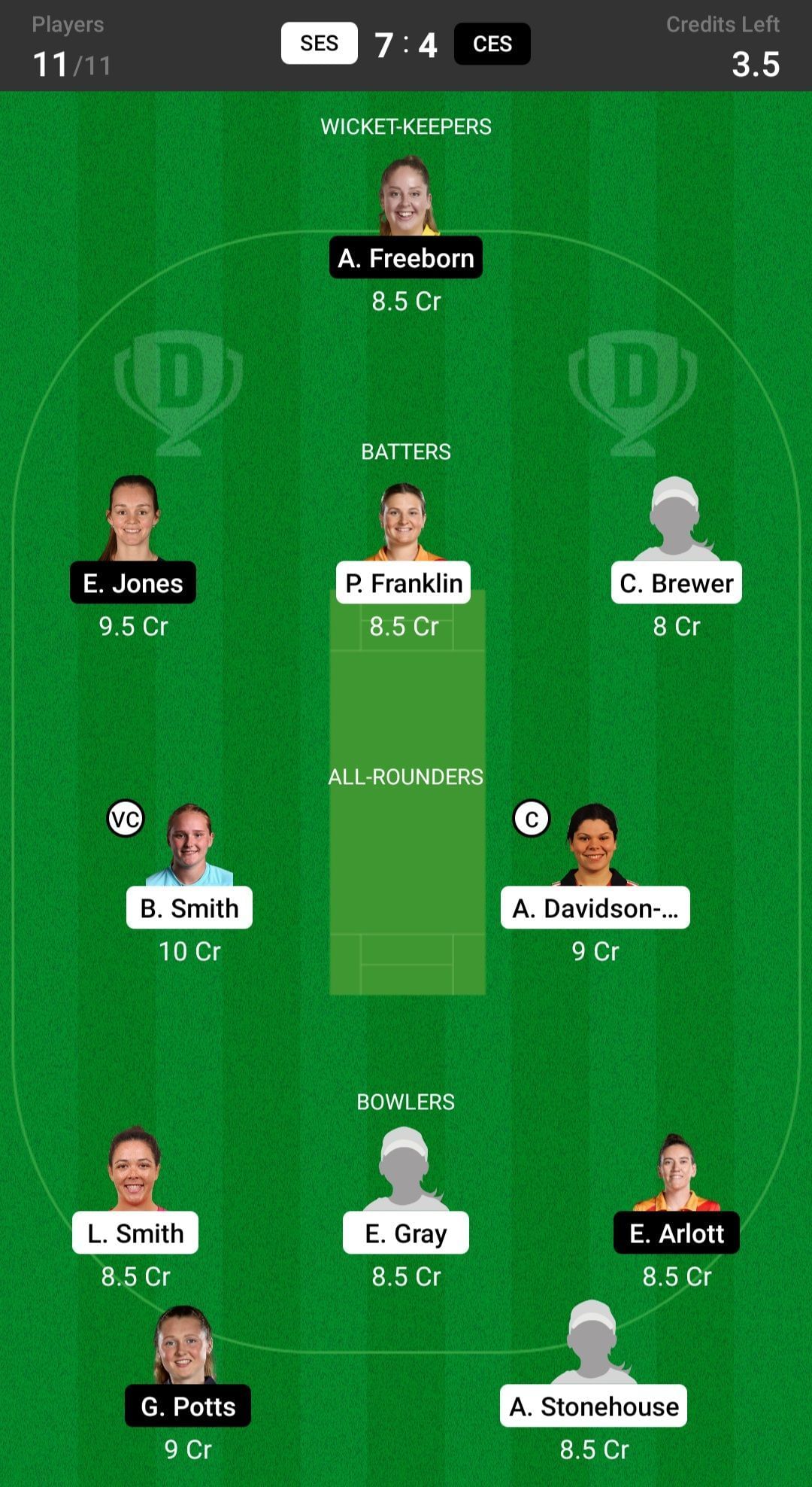 E Jones and P Franklin are the two best batter picks for the Dream11 team. C Brewer is another good pick for today's Dream11 team. She has performed exceptionally well in the last few matches.