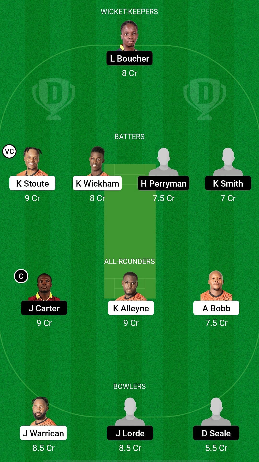 Bowlers: Jomel Warrican, Jaden Lorde, Dario Seale