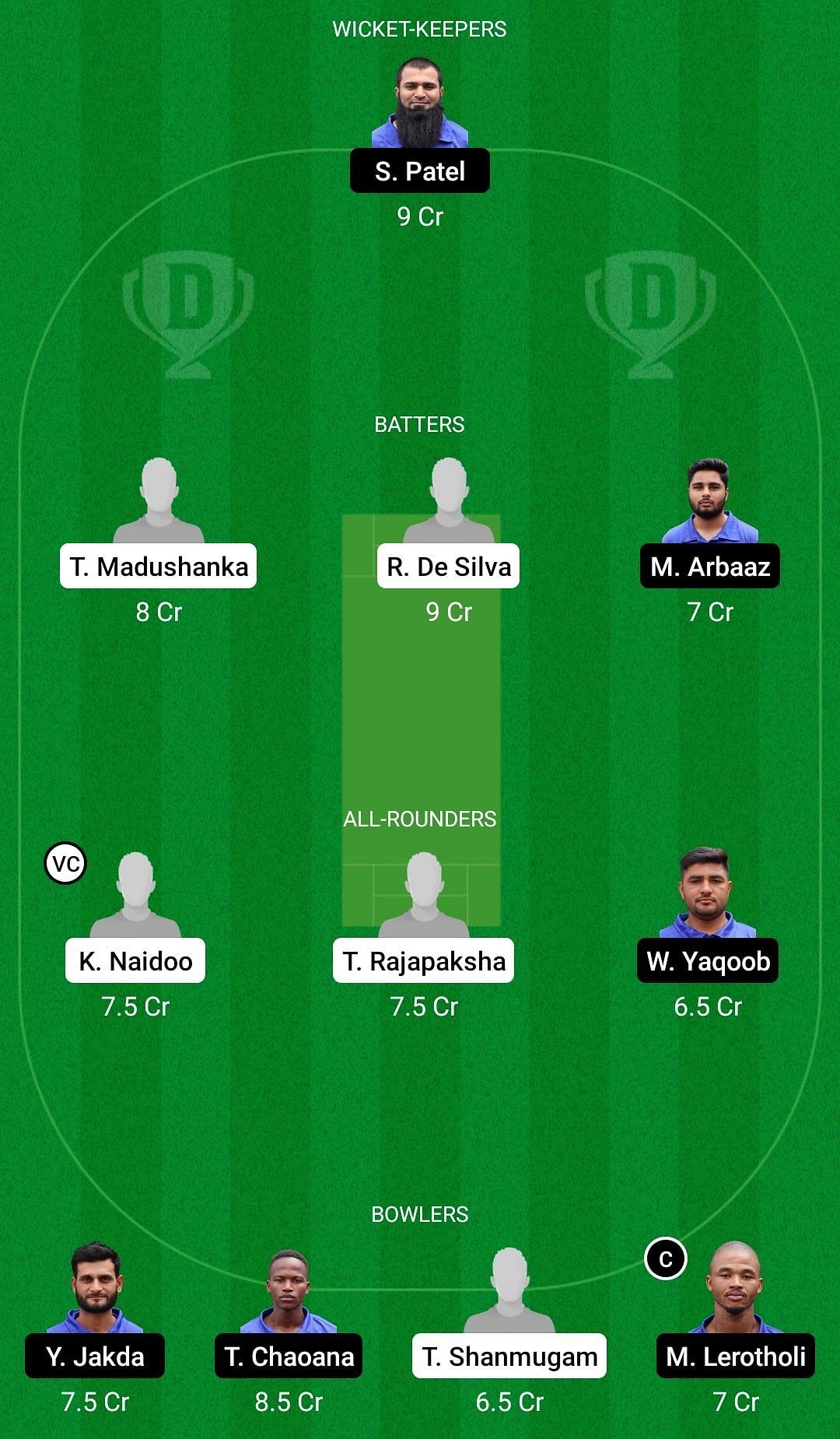Chachole Tlali, Samir Patel, Maaz Khan, Waseem Yaqoob (c), Molai Matsau, Ayaj Patel (wk), Mohammad Arbaaz Khan, Mohleki Leoela, Tsepiso Chaoana, Yahya Jakda, M Lerotholi Gabriel