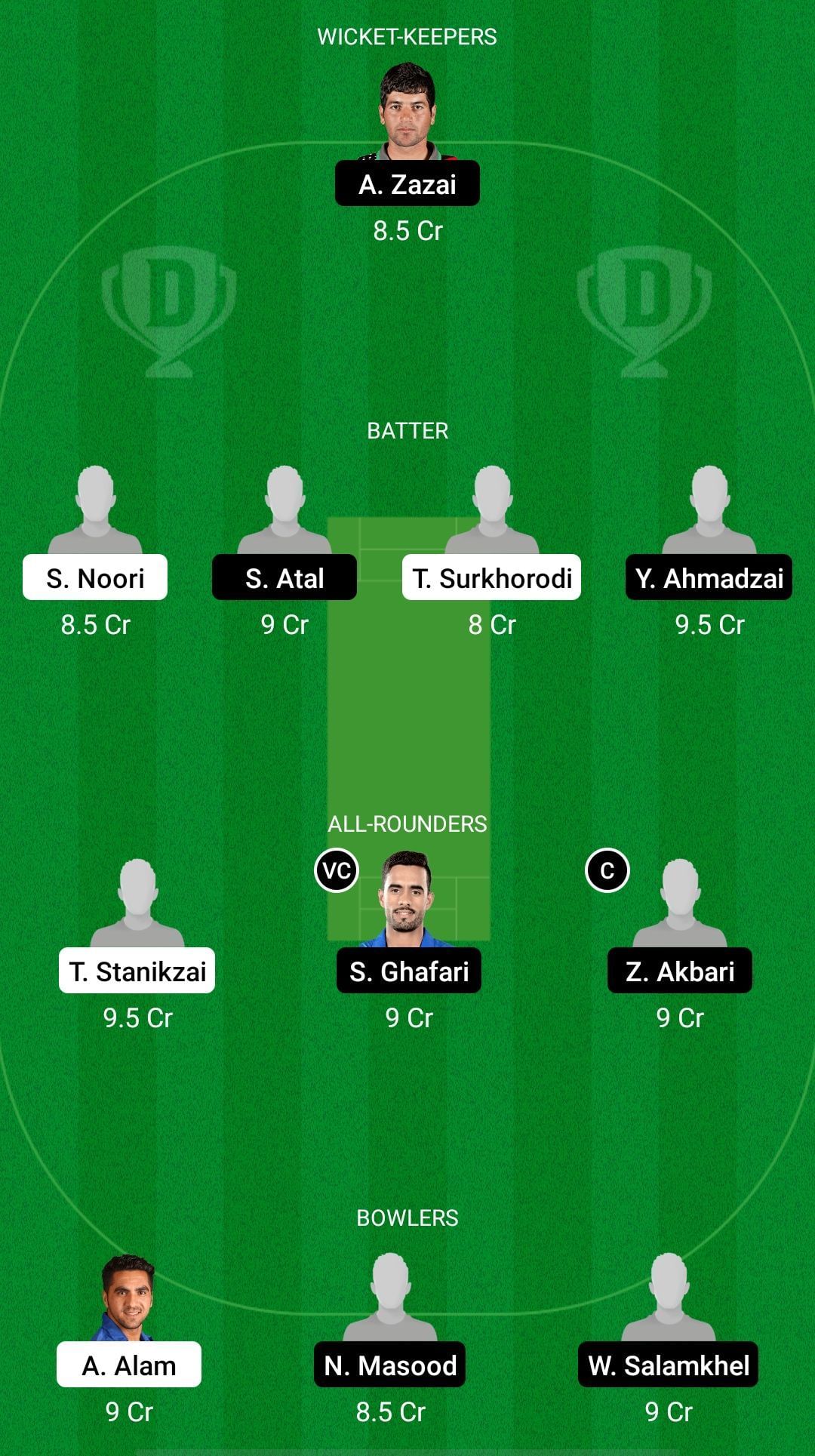 Afar Zazai: Zazai failed to perform with the bat in the only match he played in the Afghanistan One Day Tournament. But he is a quality batter who can prove to be a great differential pick for this game.