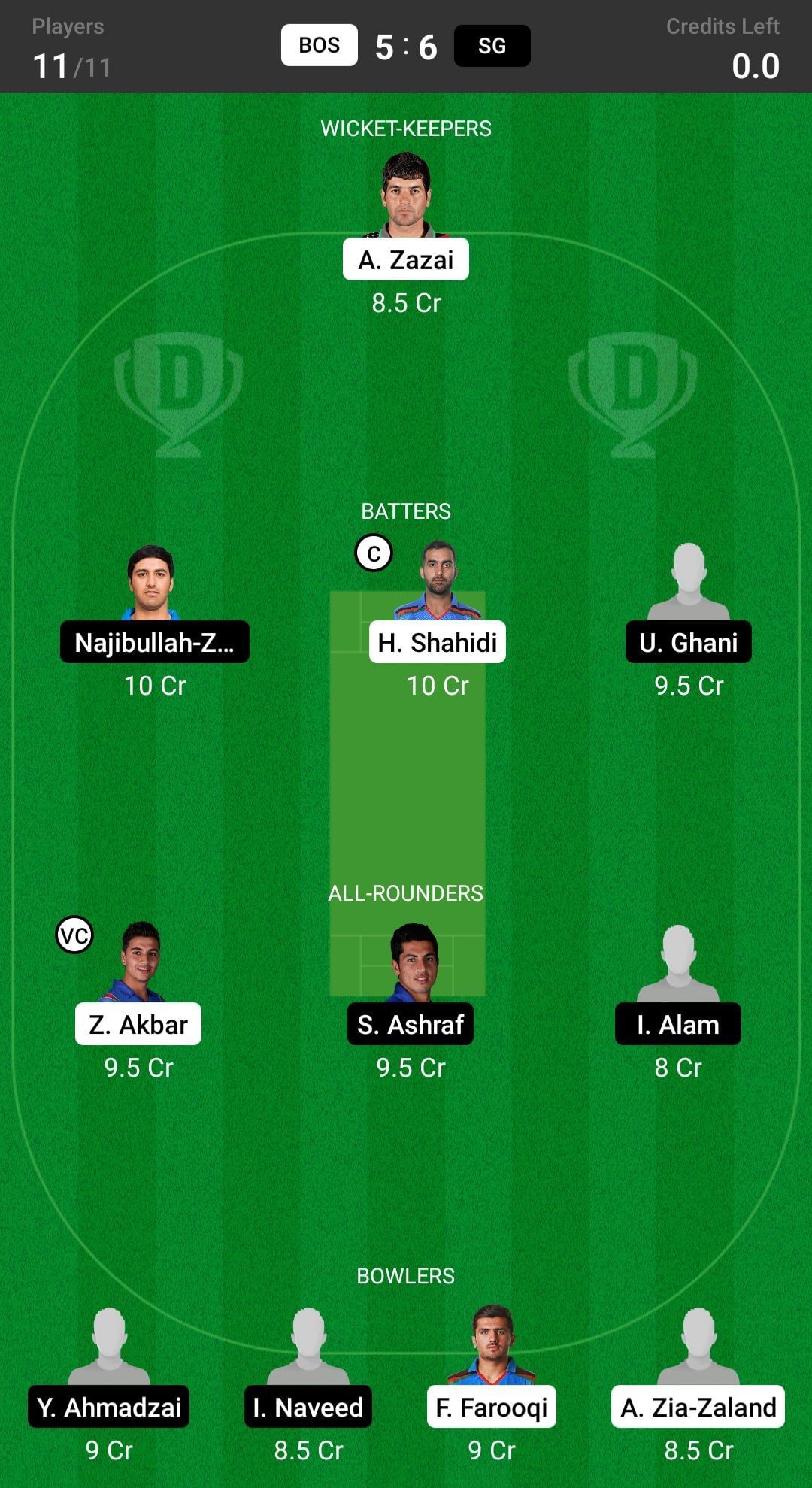 Fantasy suggestion #1: A Zazai, H Shahidi, U Ghani, N Zadran, Z Akbar, S Ashraf, I Alam, I Naveed, Y Ahmadzai, A Zia, F Farooqi