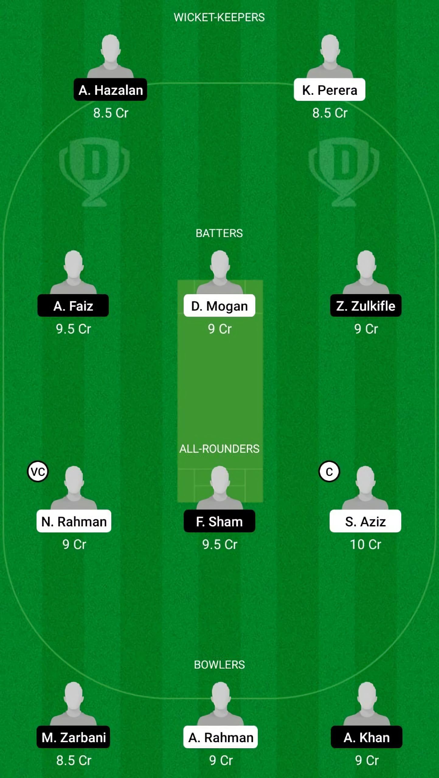 Fantasy Suggestion #2: A Hazalan, K Perera, A Faiz, Z Zulkifle, D Mogan, F Sham, N Rahman, S Aziz, A Khan, M Zarbani, A Rahman