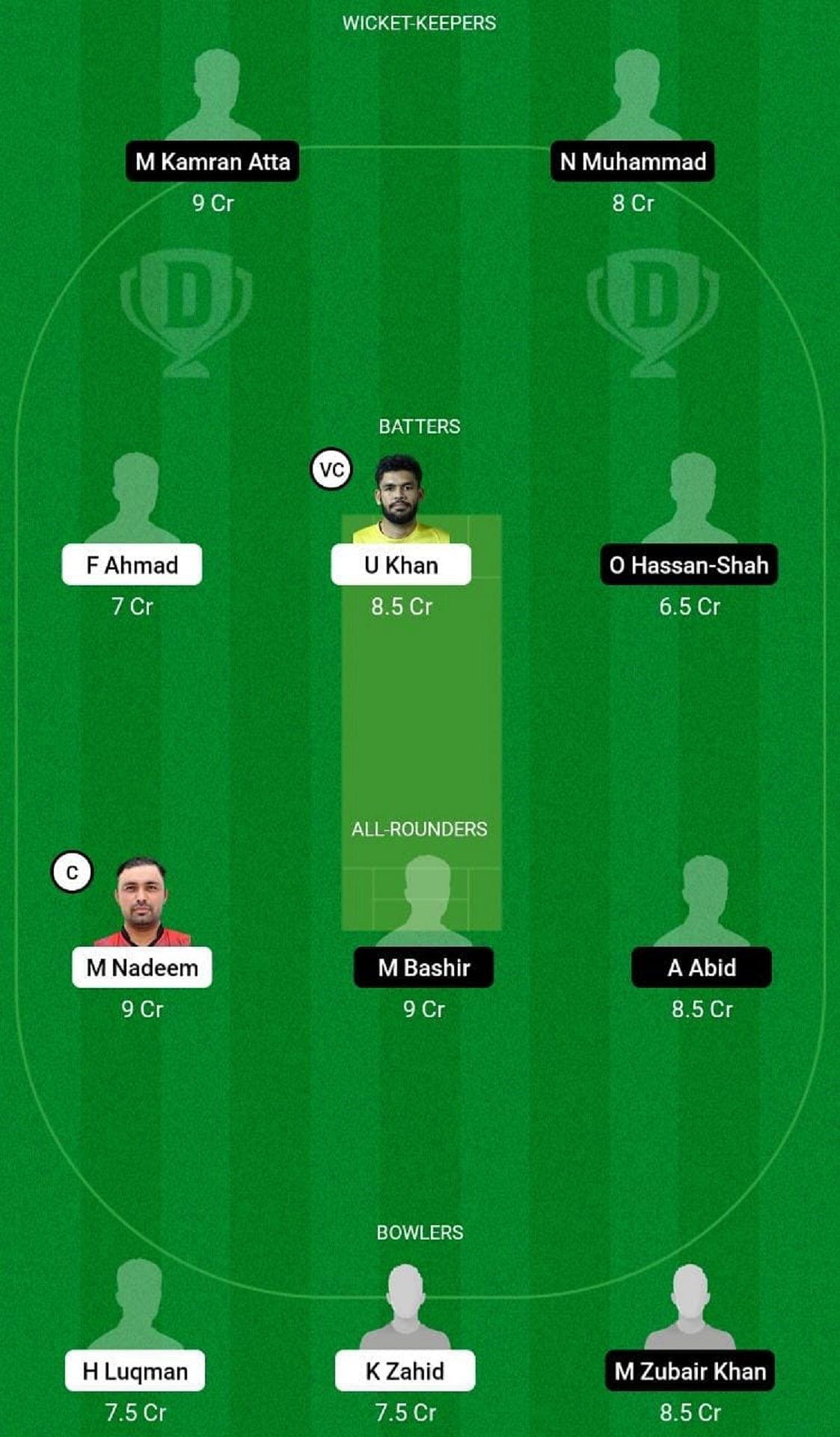 Wicketkeepers: M Kamran Atta, N Muhammad