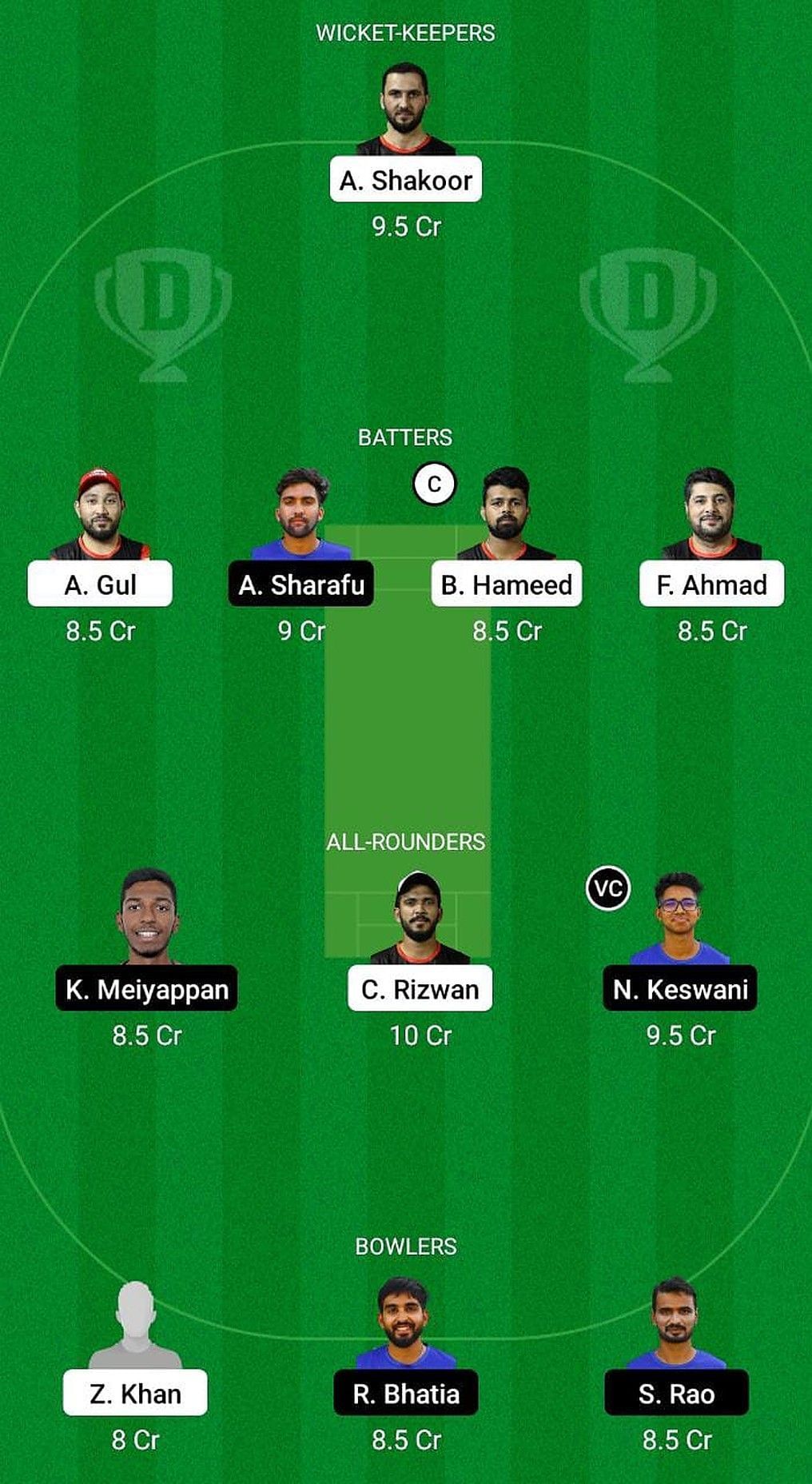 Captain: Basil Hameed. Vice-captain: Karthik Meiyappan.