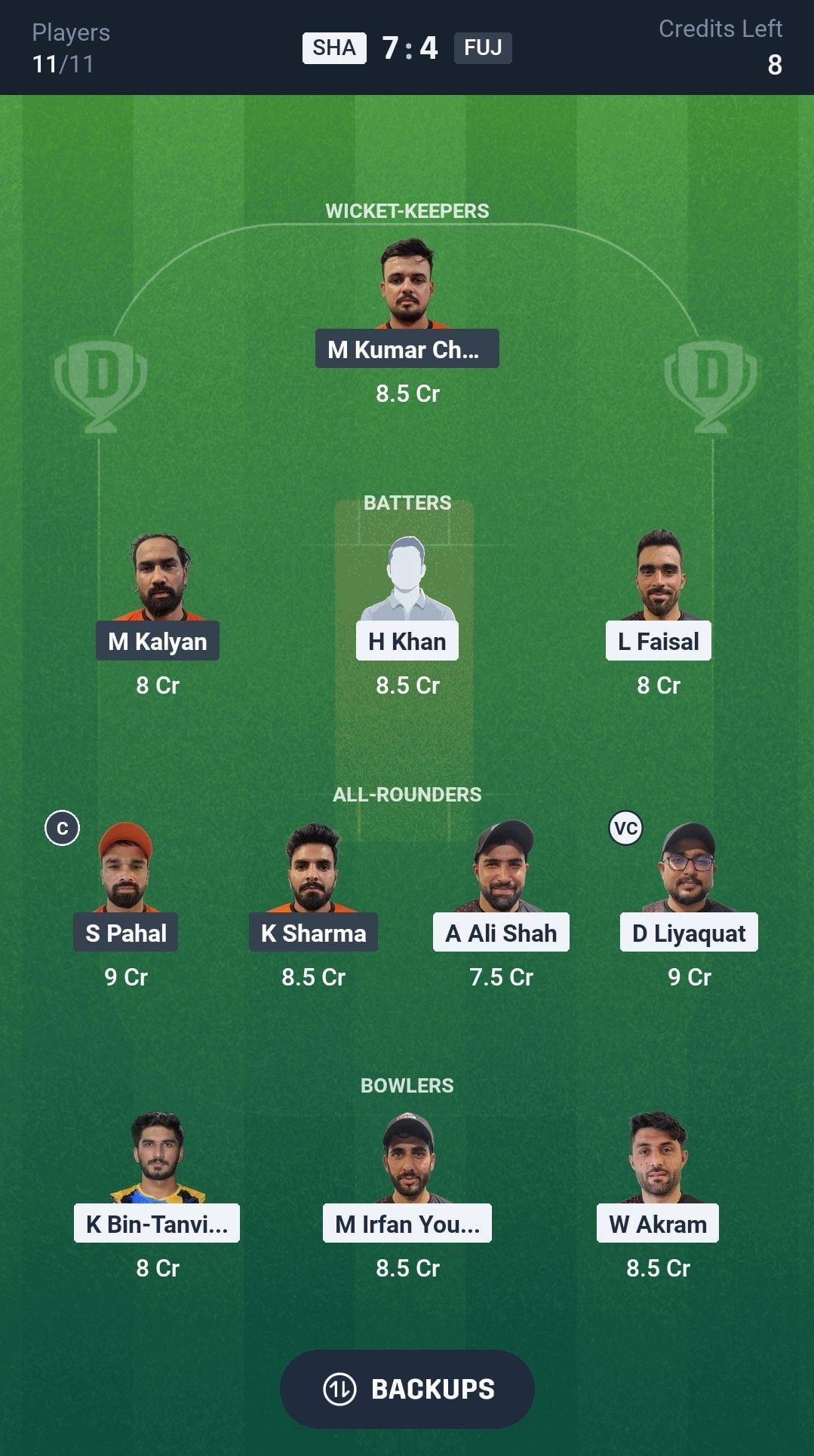 SHA vs FUJ match captain and vice-captain choices