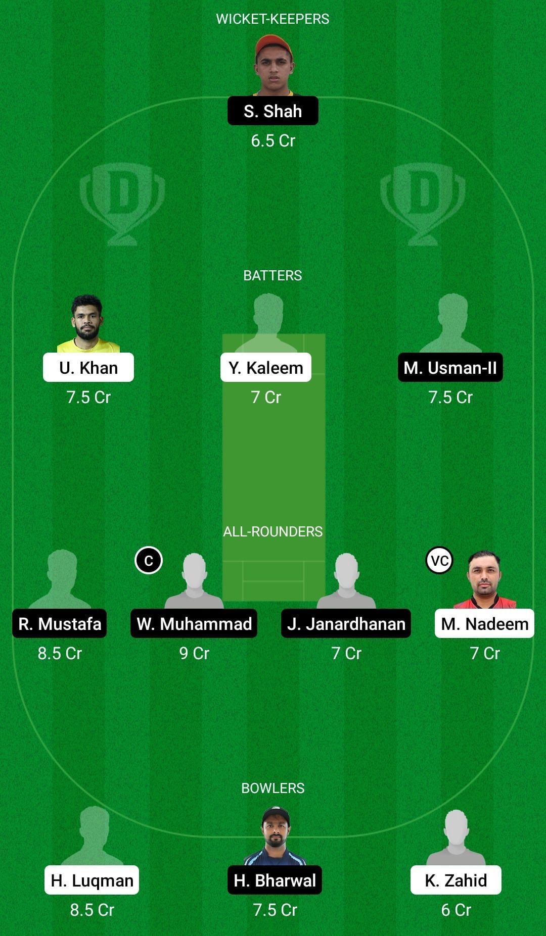 Bowlers: Junaid Siddique, Harry Bharwal, Karnal Zahid (vc)