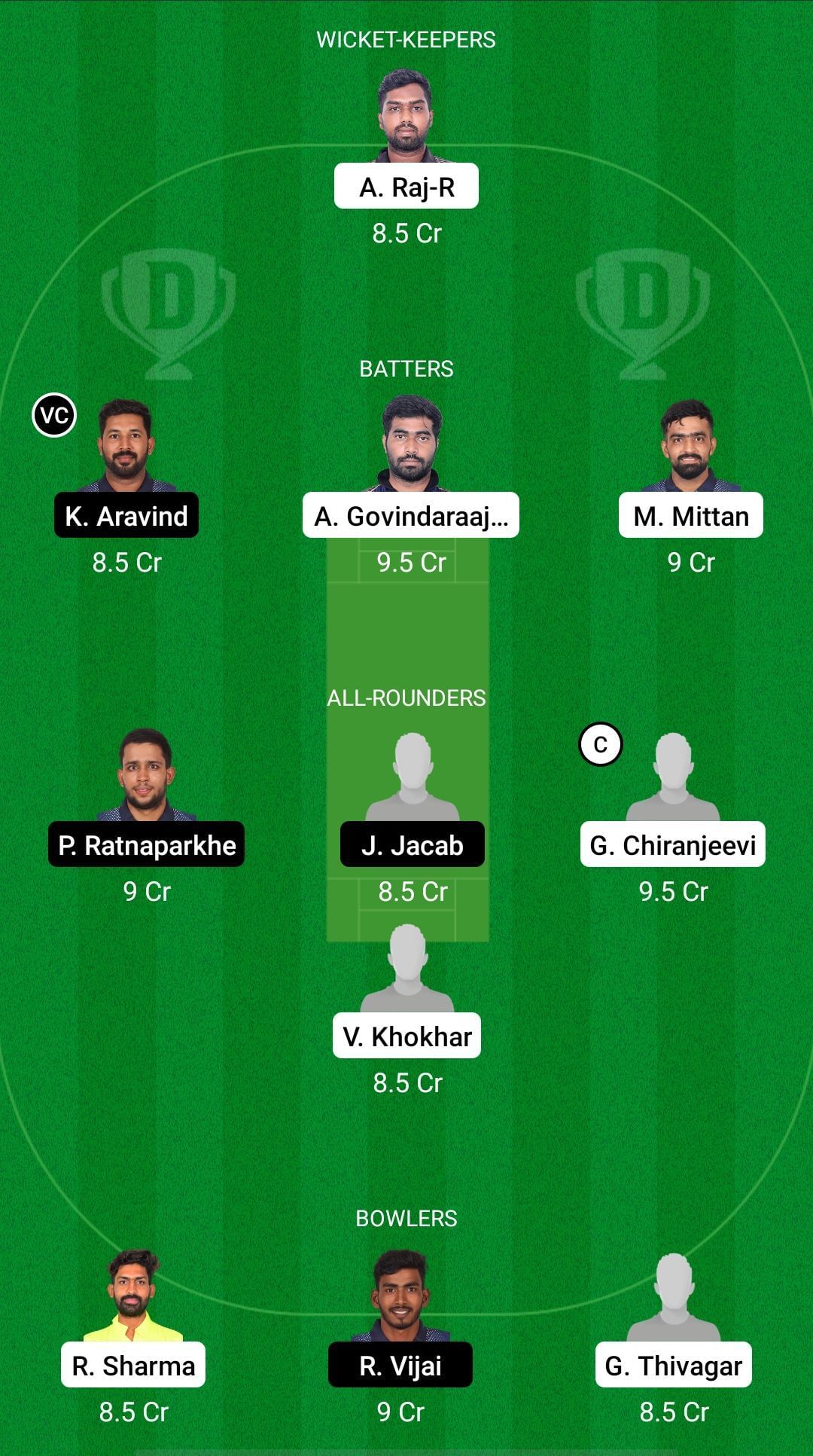 Fantasy Suggestion #2: Aravindraj Ravichandran, Aravind Kothandapani, AS Govindaraajan, Mohit Mittan, Paras Ratnaparkhe, Jullian Jacab, Chiranjeevi G, Vishal Khokhar, Raghu Sharma, Vijaji Raja, Thivagar G.