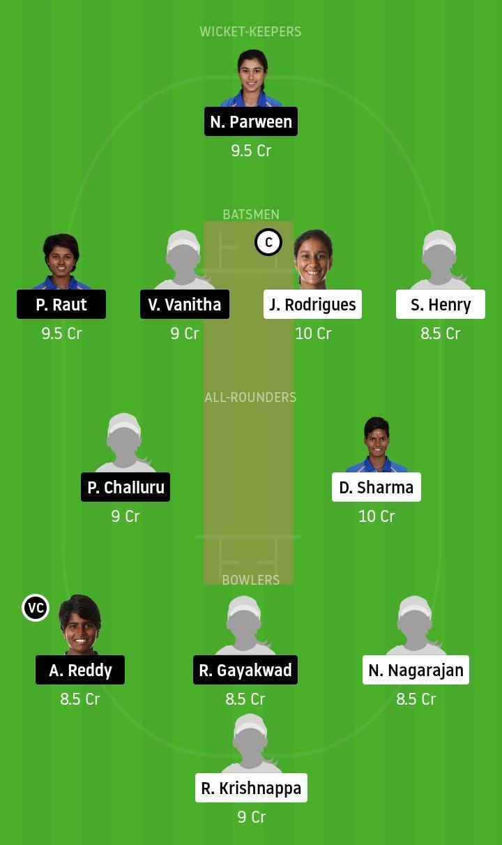 Fantasy Suggestion #1: N Parween, J Rodrigues, P Raut, V Vanita, S Henry, D Sharma, P Challuru, R Krishnappa, A Reddy, R Gayakwa,d, and N Nagarajan.