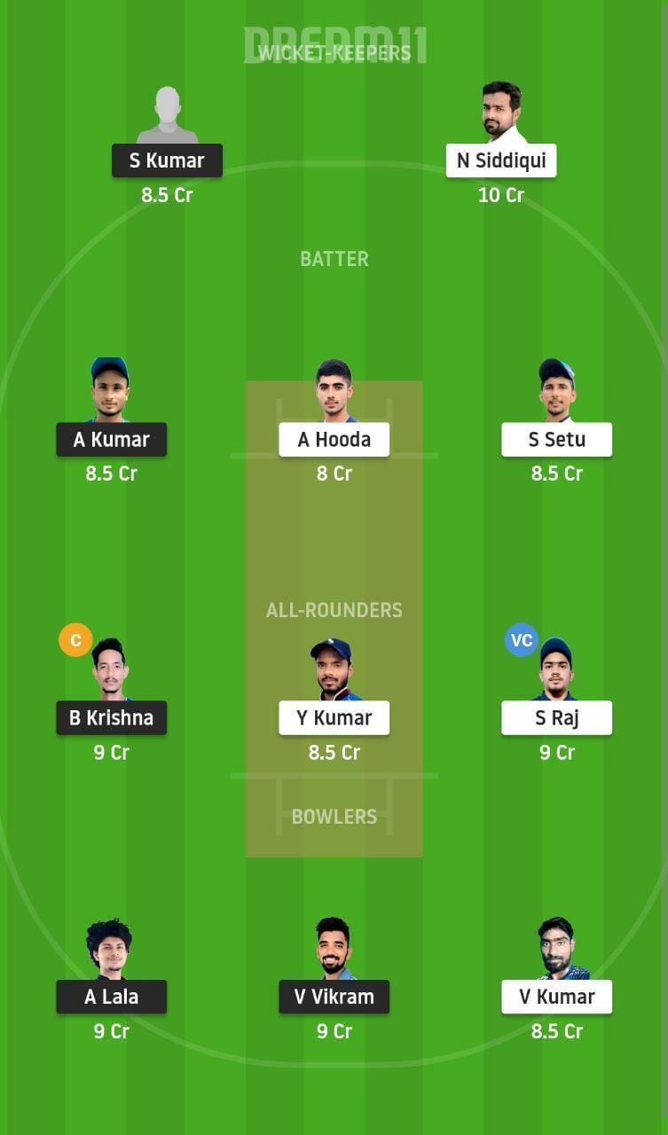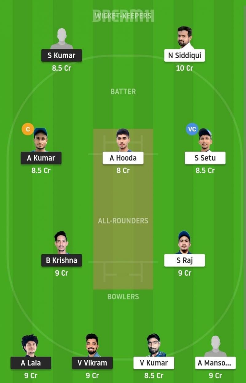 Fantasy Suggestion #1: S Kumar, N Siddiqui, A Kumar, A Hooda, S Setu, B Krishna, Y Kumar, S Raj, A Lala, V Vikram, V Kumar