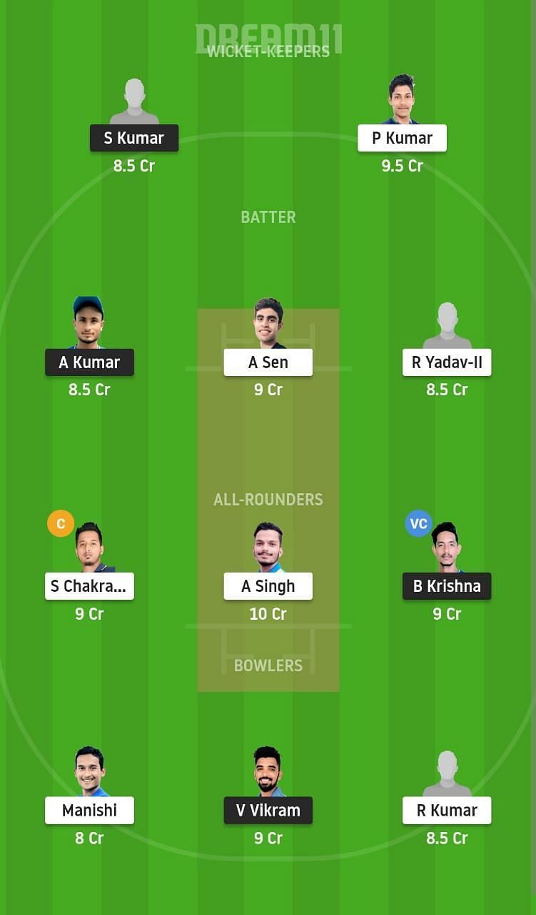 Fantasy Suggestion #1: S Kumar, P Kumar, A Sen, A Kumar, R Yadav, B Krishna, S Chakraborty, A Singh, R Kumar, Manishi, V Vikram.