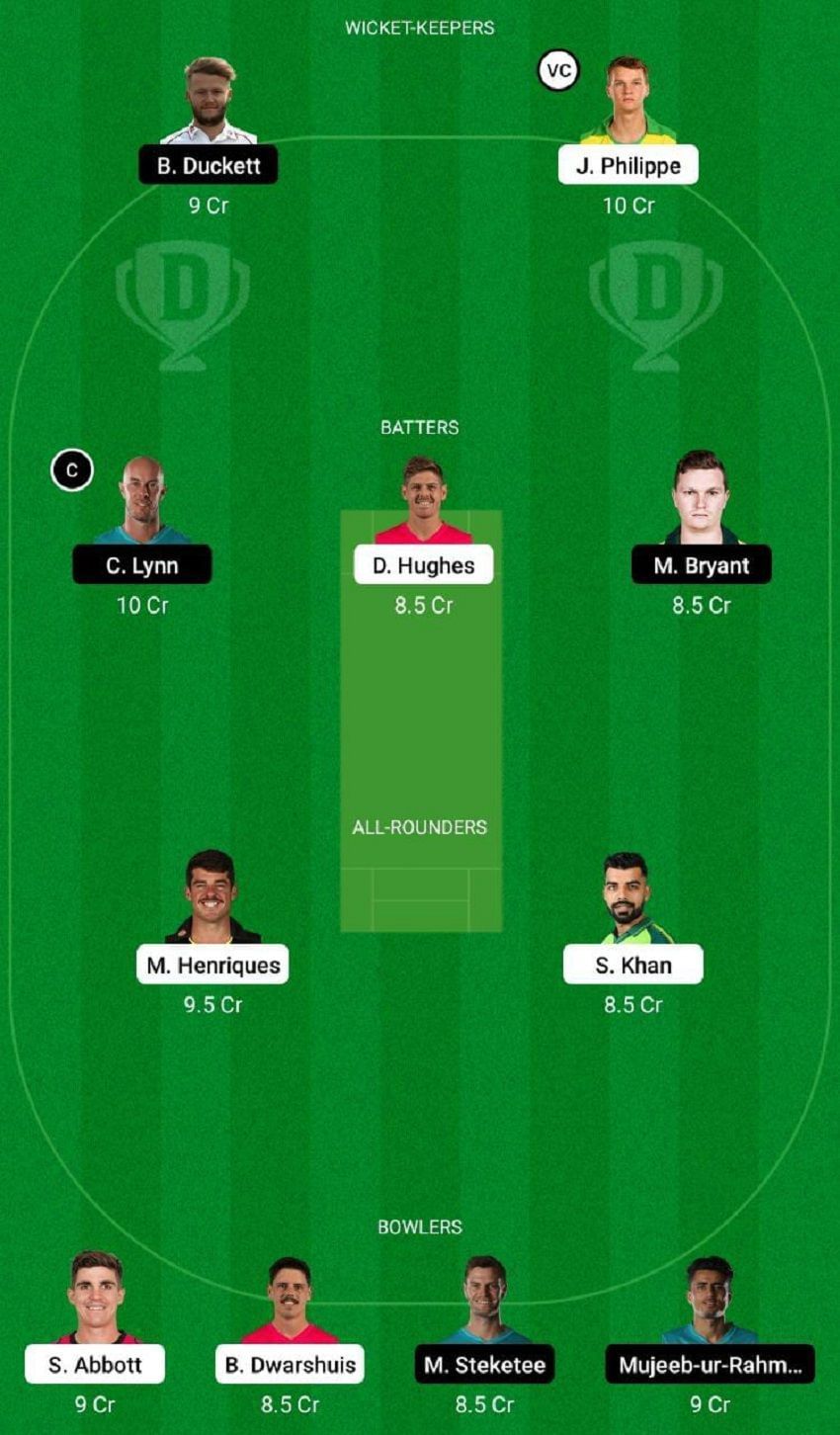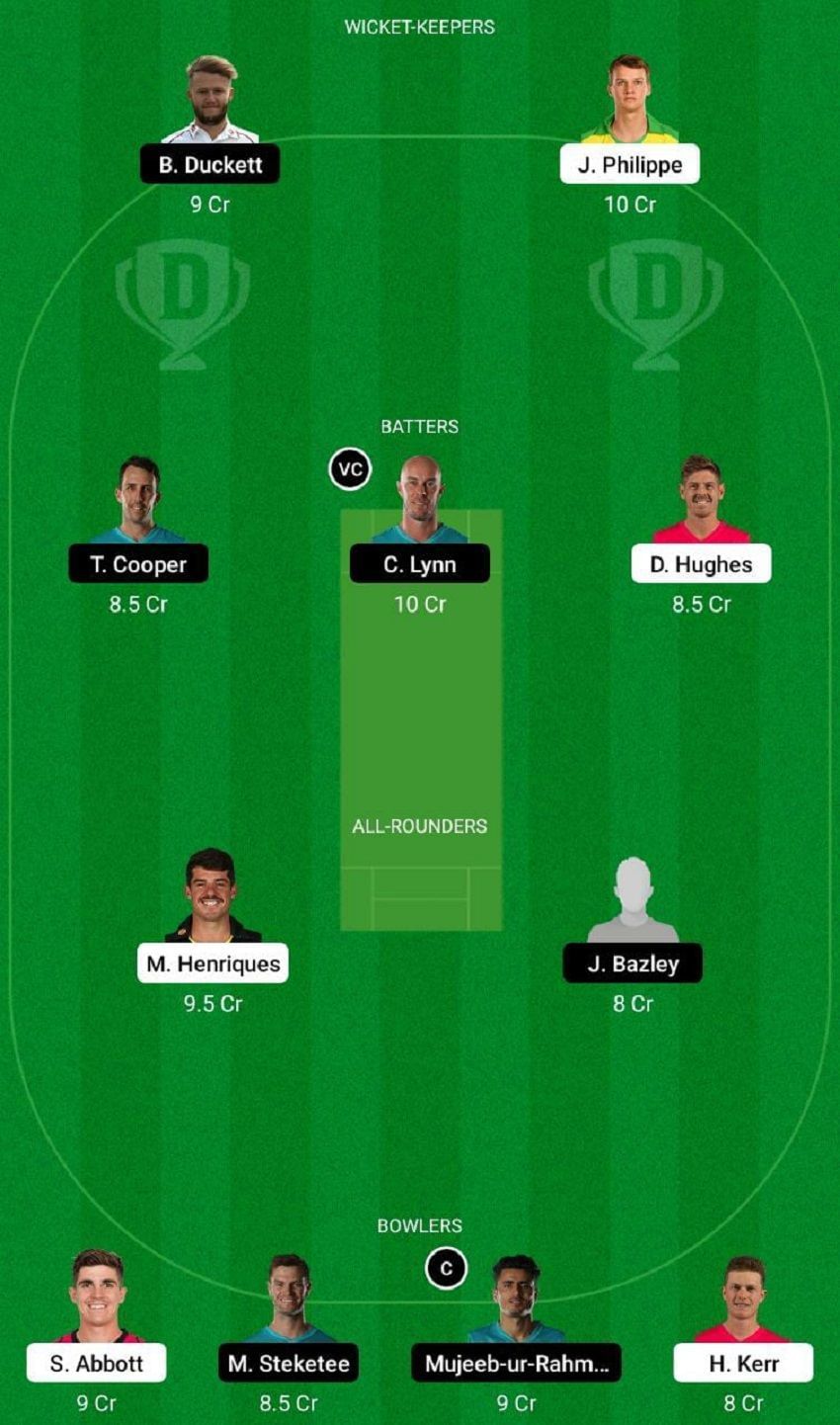 Fantasy Suggestion #1: Ben Duckett, Josh Philippe, Chris Lynn, Daniel Hughes, Max Bryant, Moises Henriques, Shadab Khan, Sean Abbott, Ben Dwarshuis, Mark Steketee and Mujeeb Ur Rehman
