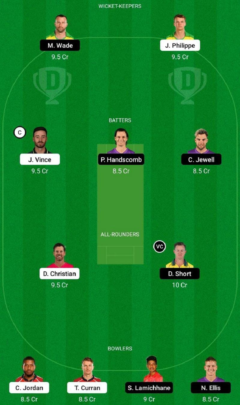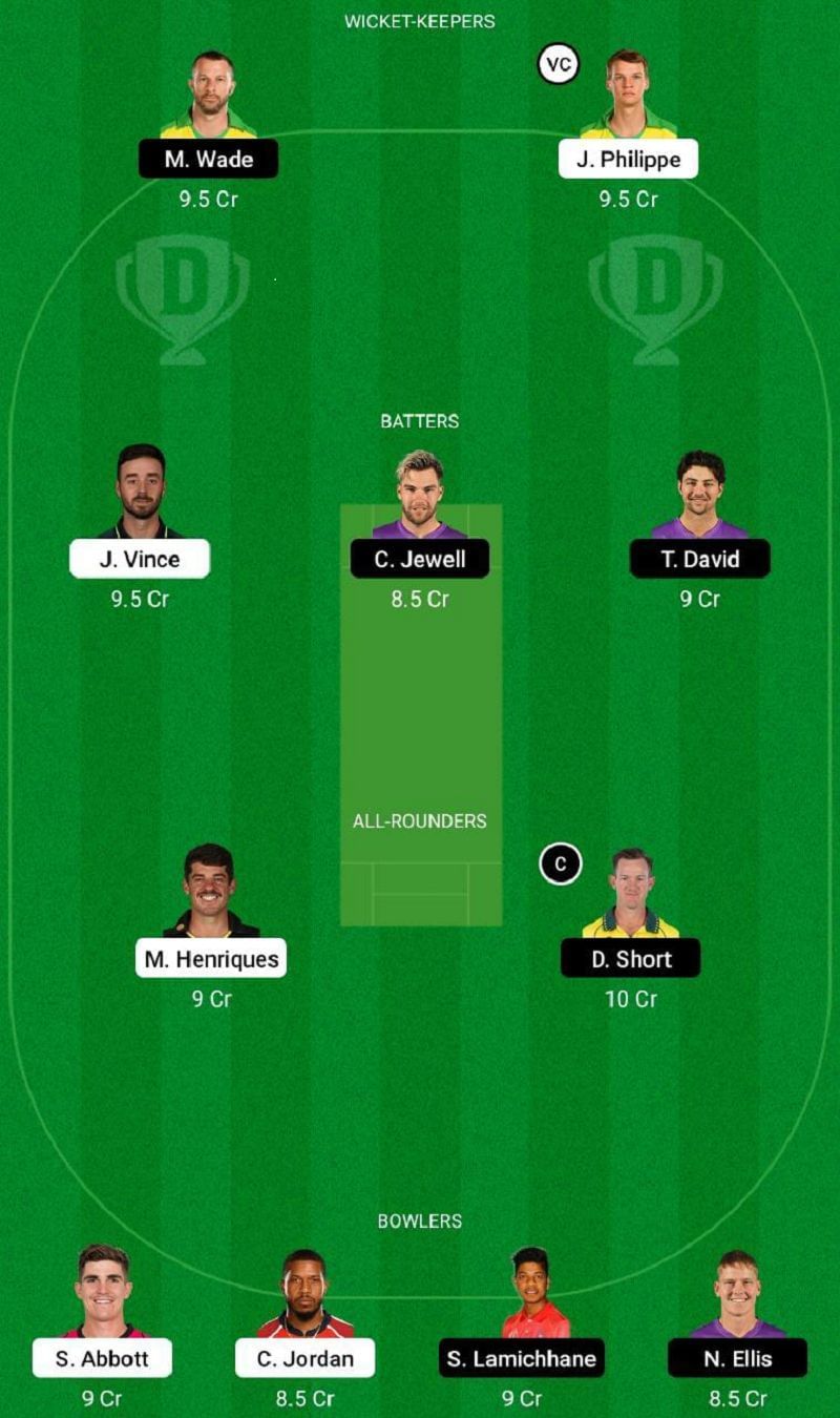 Fantasy Suggestion #1: Matt Wade, Josh Philippe, James Vince, Tim David, Caleb Jewell, Moises Henriques, D'Arcy Short, Sean Abbott, Chris Jordan, Sandeep Lamichhane and Nathan Ellis