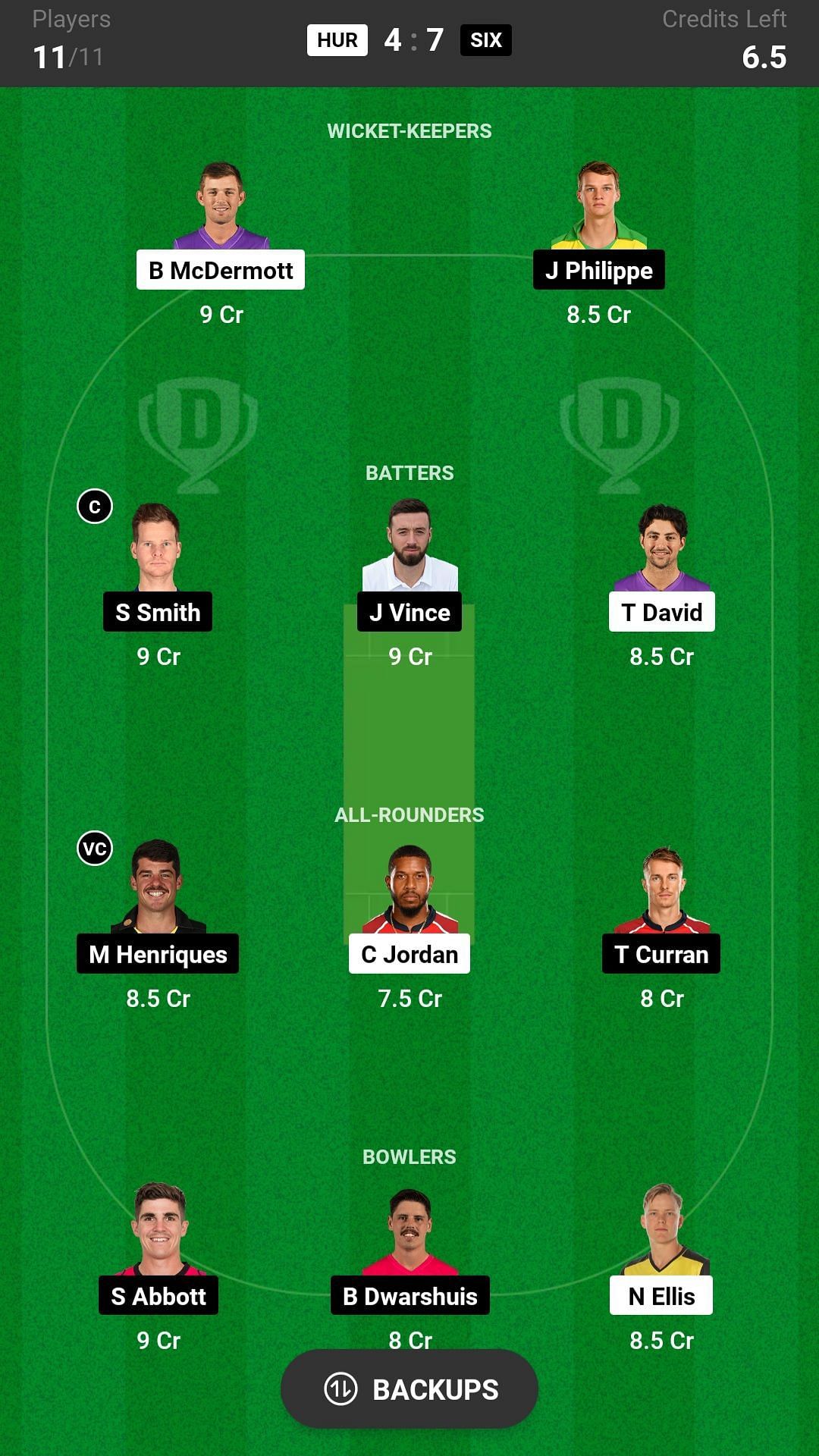 SIX vs HUR match captain and vice-captain choices