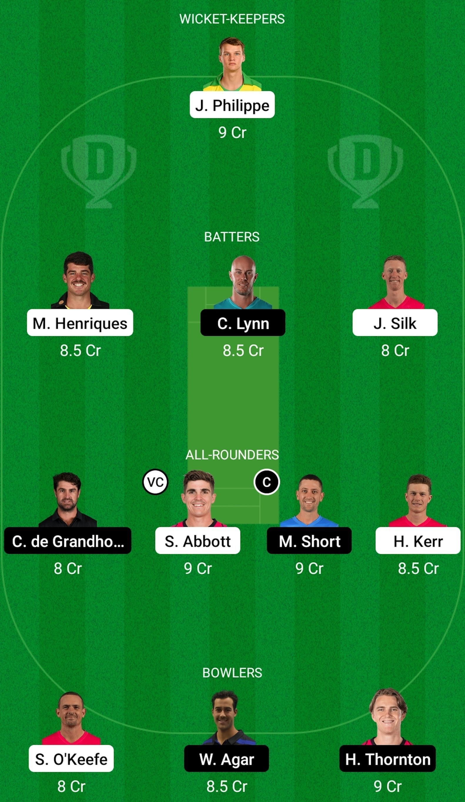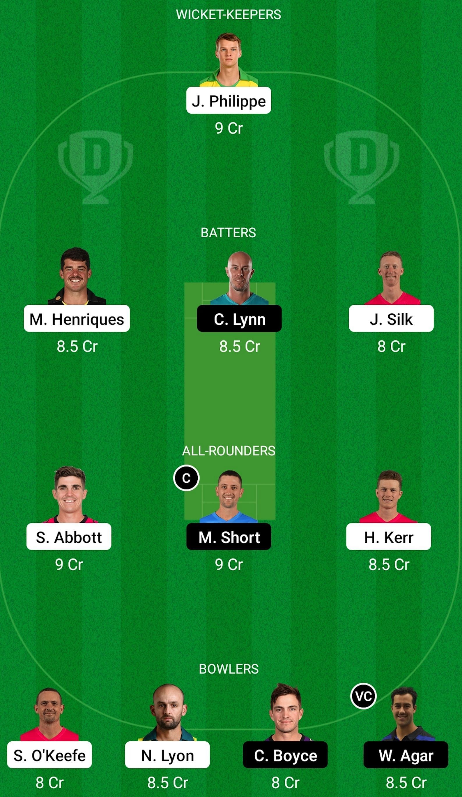 Joshua Philippe (wk), Steve Smith, Kurtis Patterson, Moises Henriques (c), Jordan Sil, Dan Christian, Ben Dwarshuis, Hayden Kerr, Sean Anthony Abbott, Nathan Lyon, Steve O'Keefe