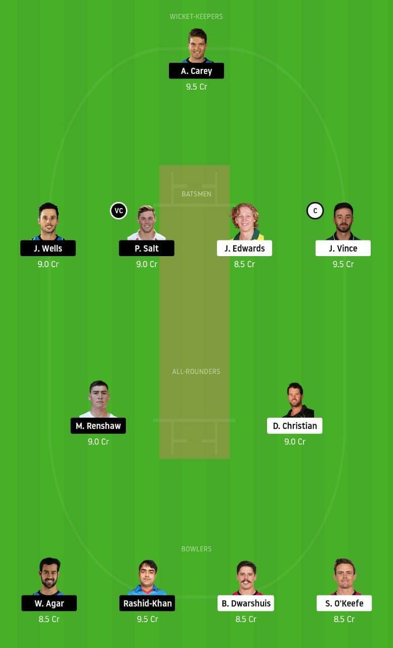 Jake Weatherald, Phil Salt, Matt Renshaw, Alex Carey (C&WK), Jono Wells, Ryan Gibson, Rashid Khan, Daniel Worrall, Peter Siddle, Wes Agar and Danny Briggs/Matt Short