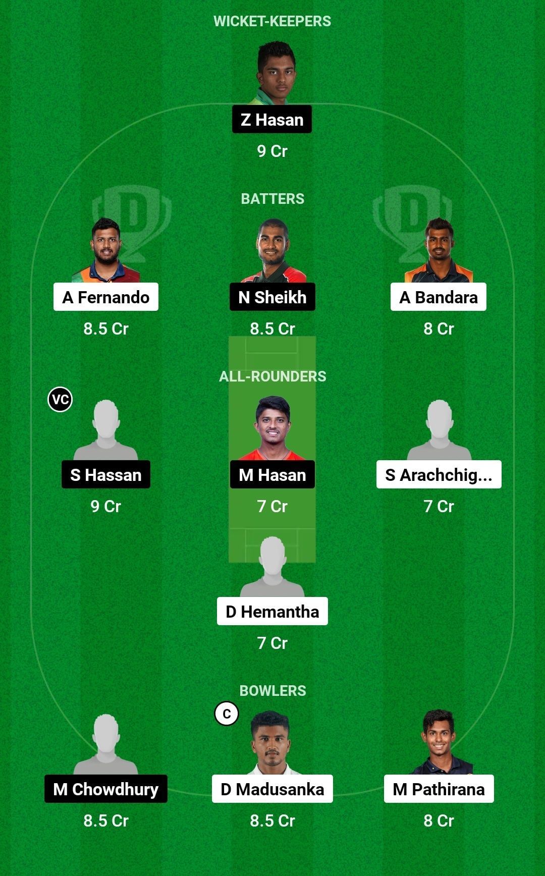 Both teams have some consistent all-rounders and quality top-order batters and they could be the key. Thus, the likes of Naim Sheikh, Saif Hassan, Avishka Fernando, Sahan Arachchige, and Dushan Hemantha will be the ones to watch out for.