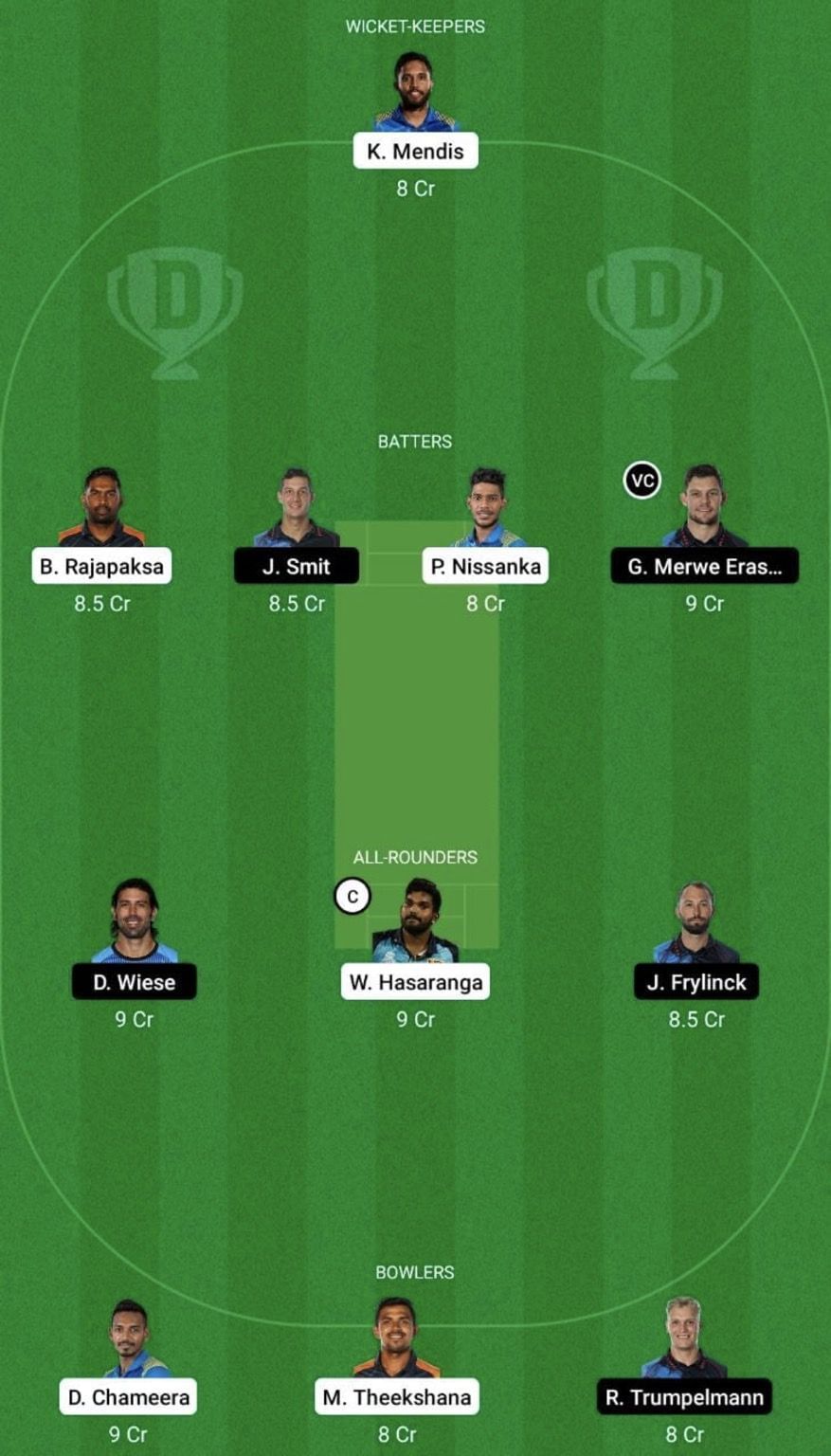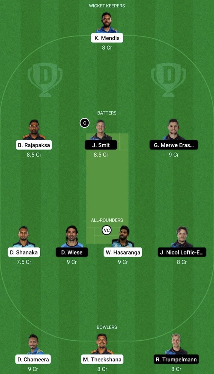 Bowlers: Dushmantha Chameera, Maheesh Theekshana, Ruben Trumpelmann