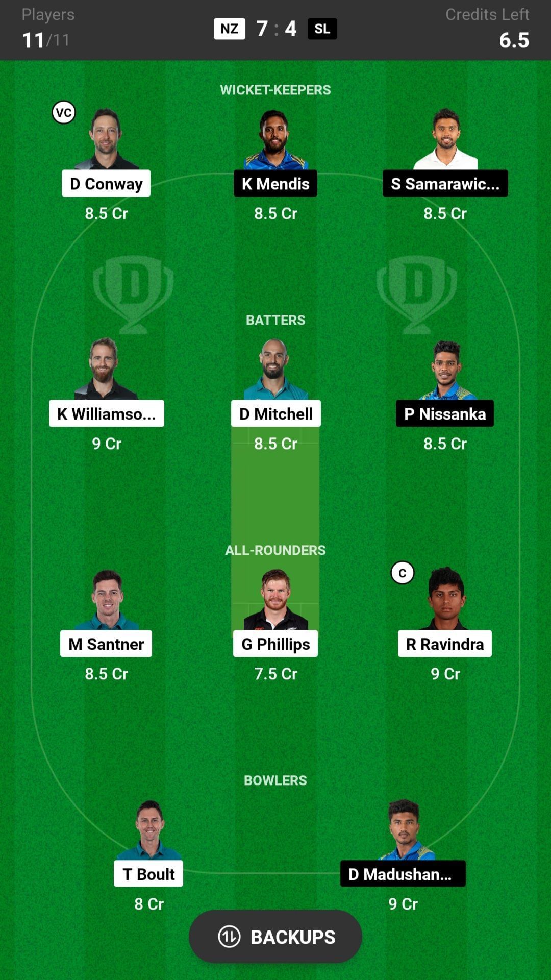 Sri Lanka vs New Zealand Dream11 Prediction Today, Grand League