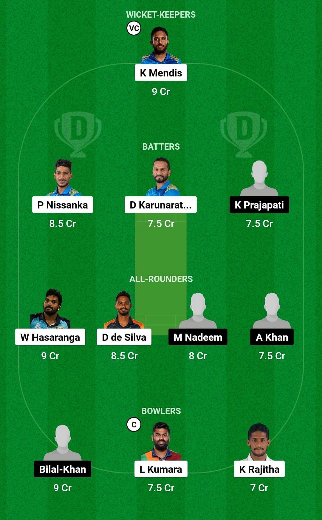 Batters: Pathum Nissanka, Dimuth Karunaratne, Kashyap Prajapati