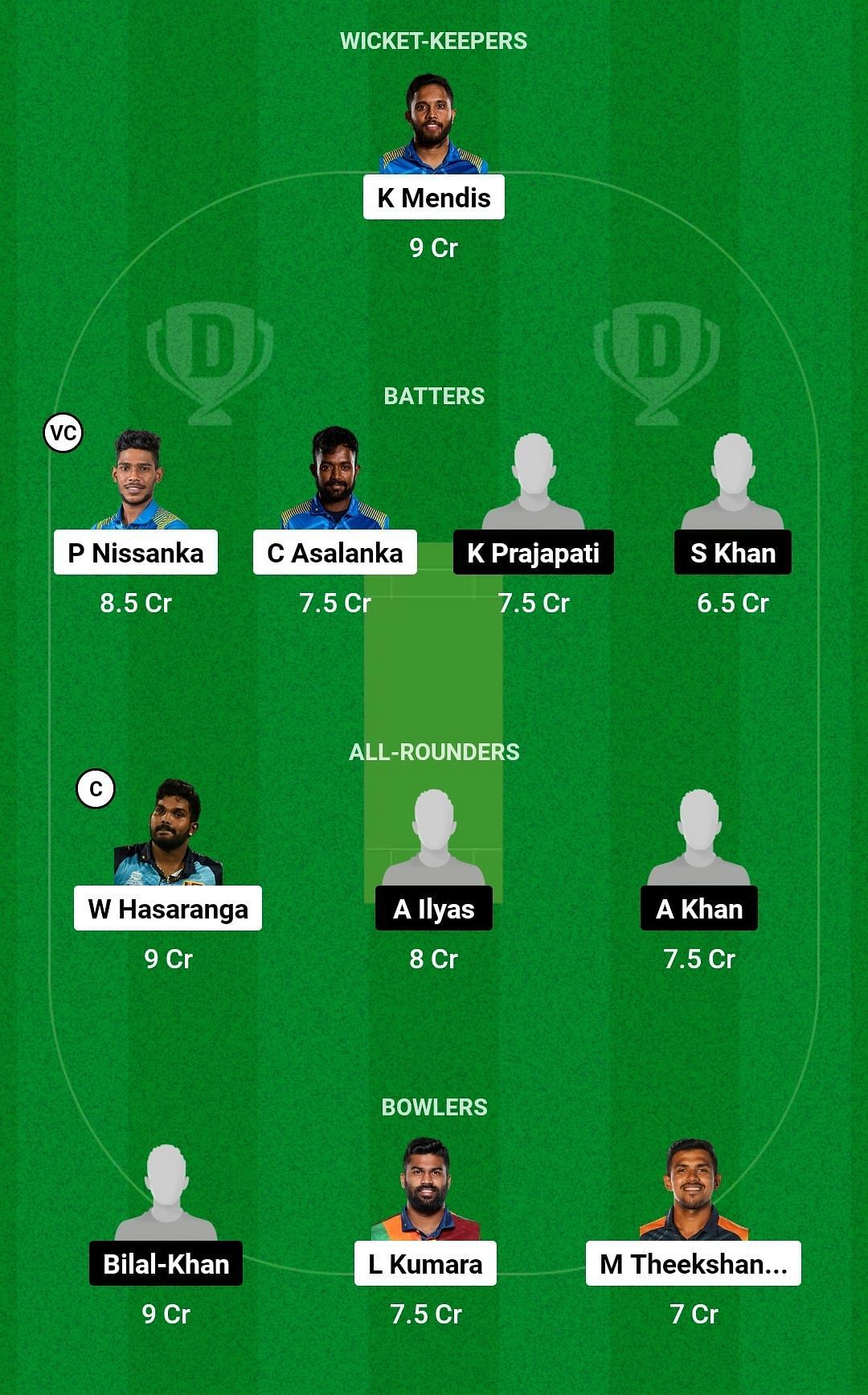 Bowlers: Maheesh Theekshana, Lahiru Kumara, Bilal Khan