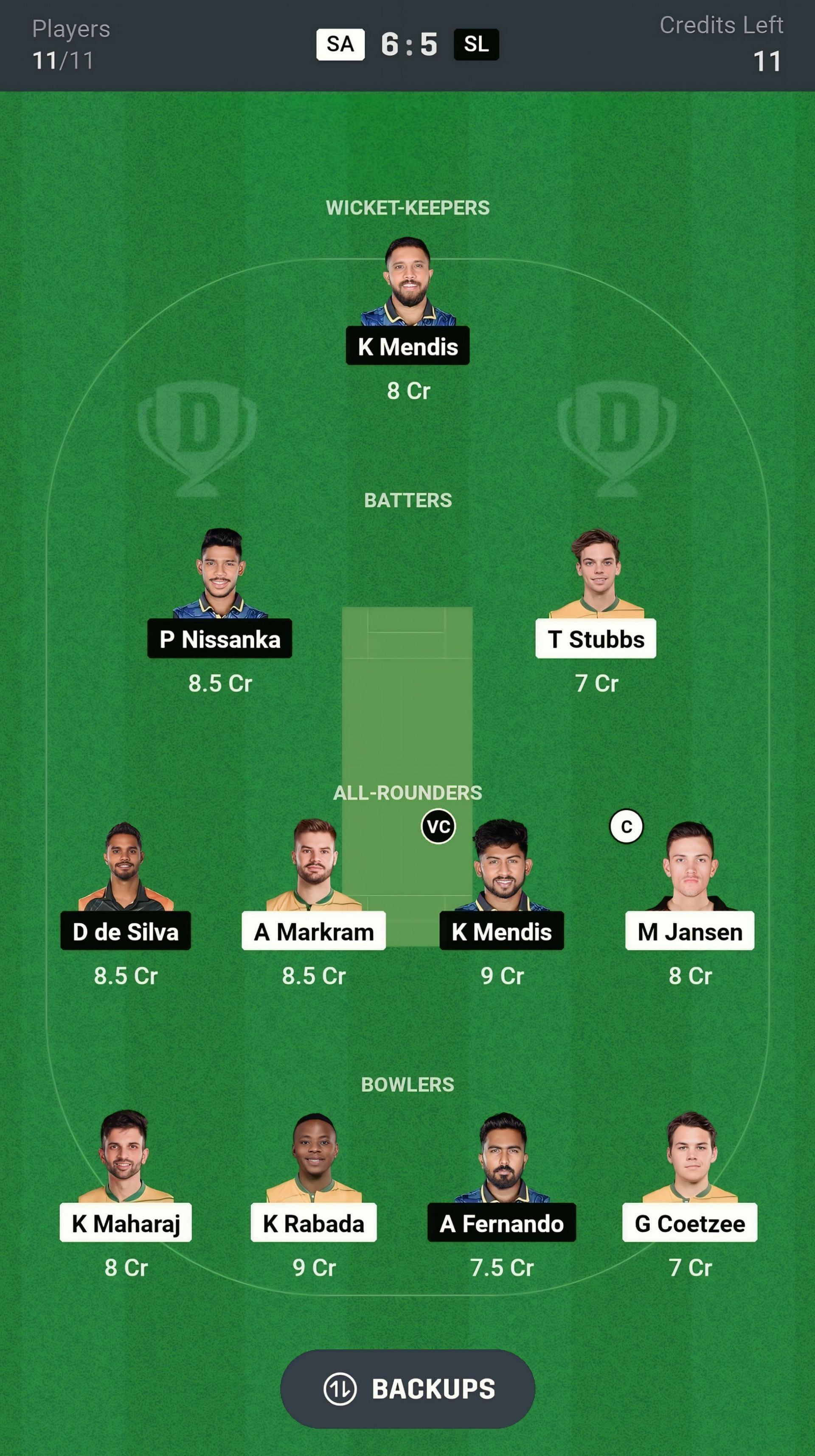 Bowlers: K Rabada, G Coetzee, K Maharaj, A Fernando