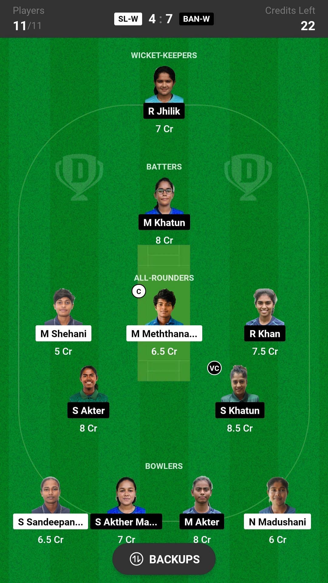Bowlers: S Akther, M Akter, S Sandeepani, N Madushani