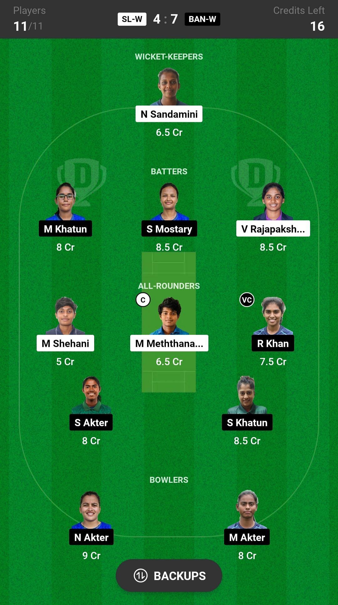 V Rajapaksha and M Khatun are the two best batsmen picks for the Dream11 team. S Mostary played exceptionally well in the last series, so she is also a good pick for today's Dream11 fantasy team.