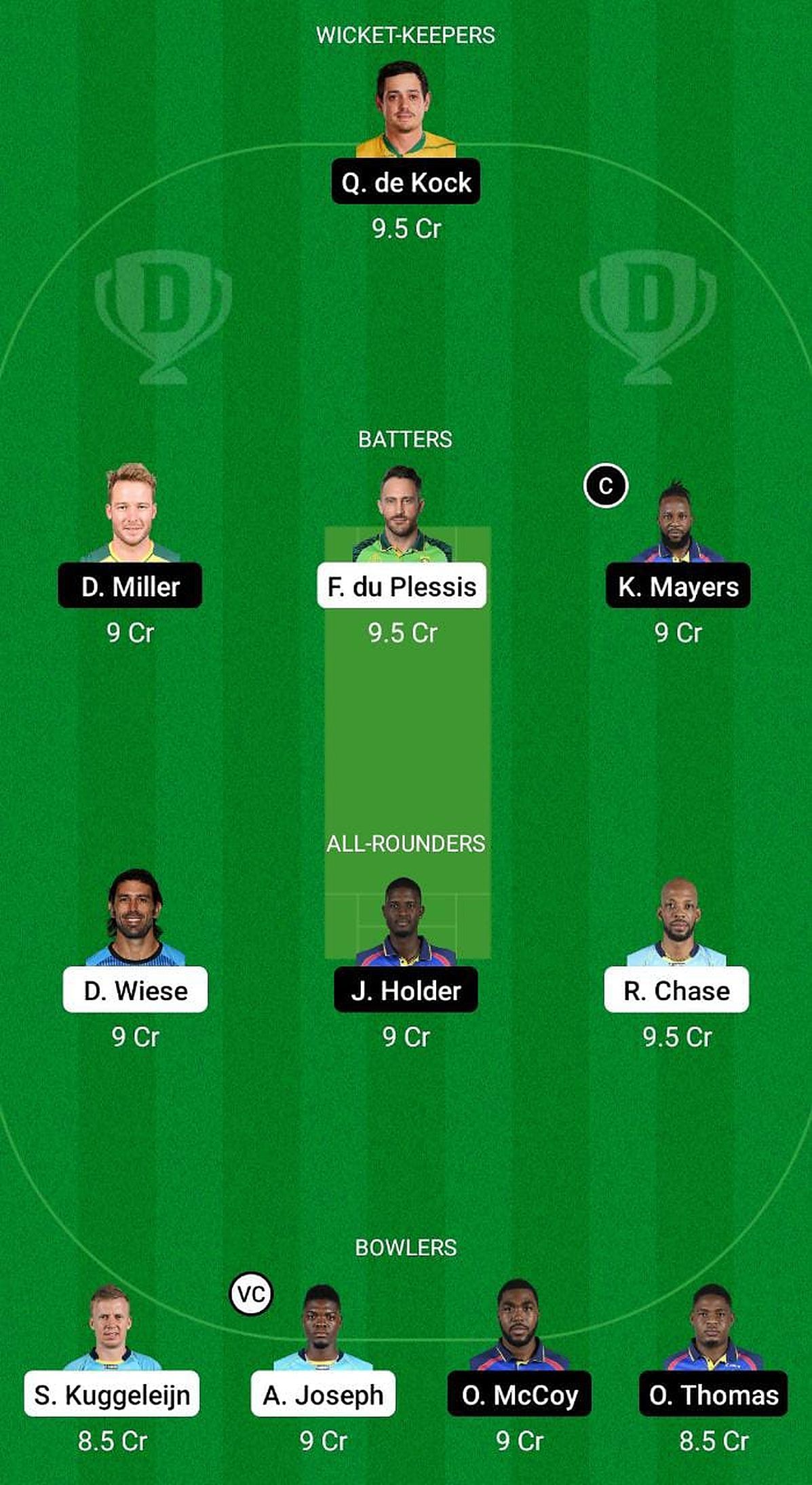 Batters: David Miller, Kyle Mayers, Faf du Plessis