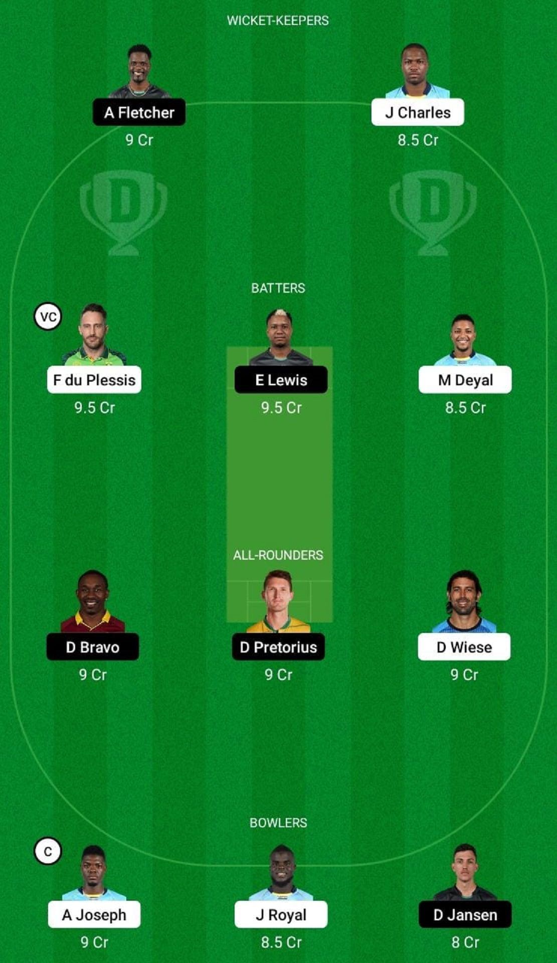 Batters: Mark Deyal, Faf Du Plessis, Evin Lewis