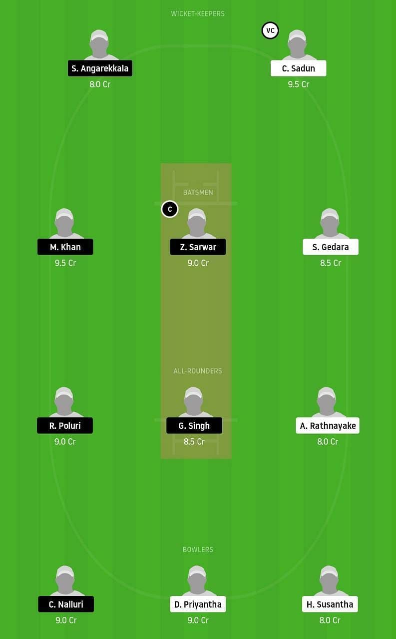 Fantasy Suggestion #1: C Sadun, S Angarekkala, Z Sarwar, M Khan, S Gedera, G Singh, R Poluri, A Rathnayake, D Priyantha, H Susantha and C Nalluri