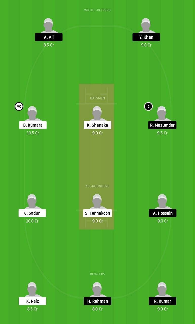Captain: R Mazumder, Vice-Captain: B Kumara