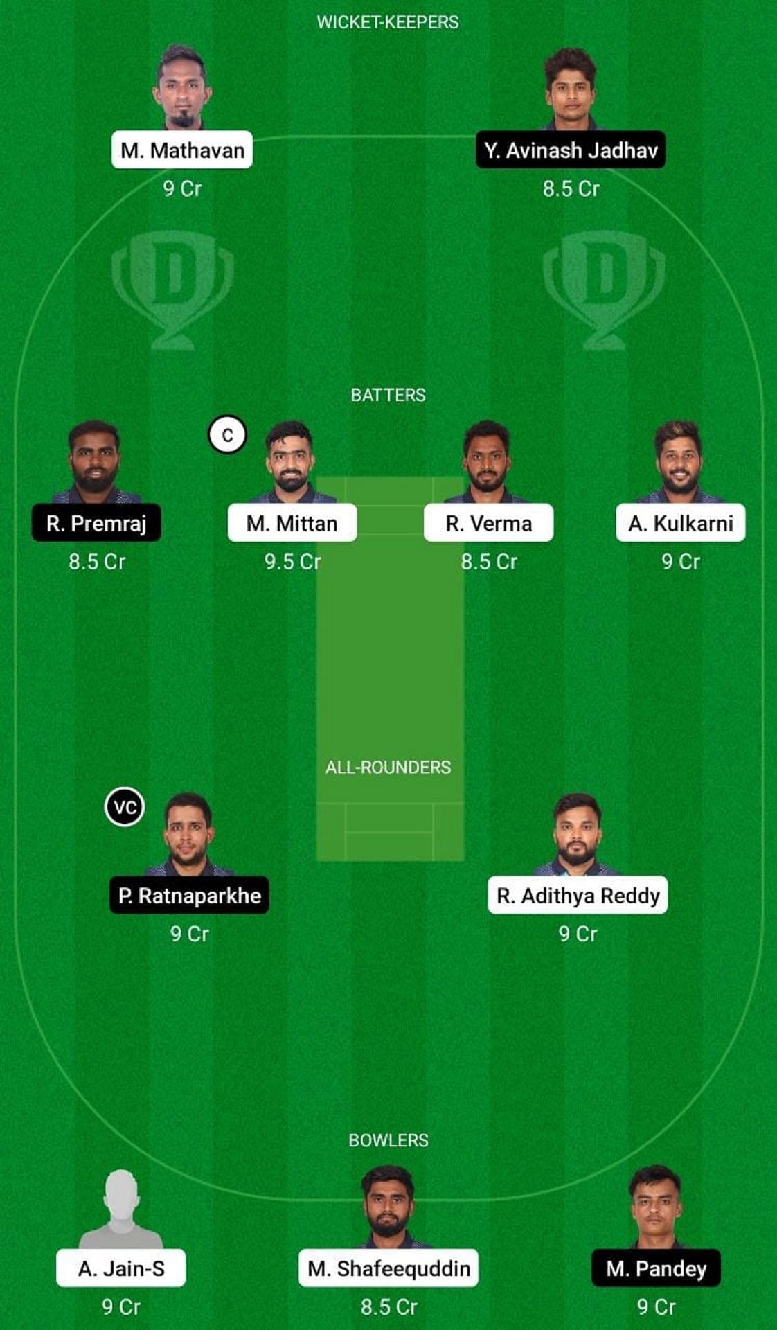 Fantasy Suggestion #2: Y Avinash Jadhav, M Mathavan, M Mittan, R Premraj, A Kulkarni, R Verma, R Adithya Reddy, P Ratnaparkhe, A Jain, M Shafeequddin, M Pandey.