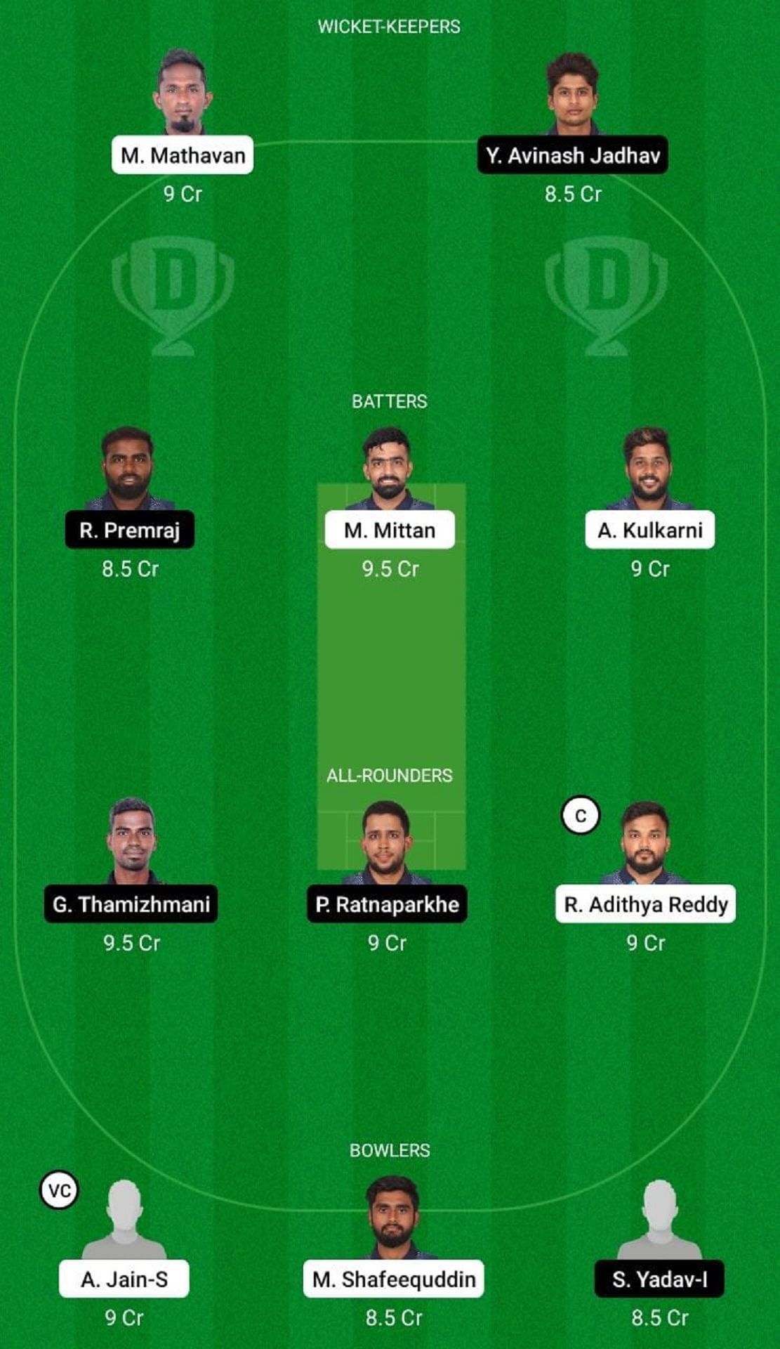 Fantasy Suggestion #1: Y Avinash Jadhav, M Mathavan, M Mittan, R Premraj, A Kulkarni, R Adithya Reddy, P Ratnaparkhe, G Thamizhmani, A Jain, M Shafeequddin, S Yadav.