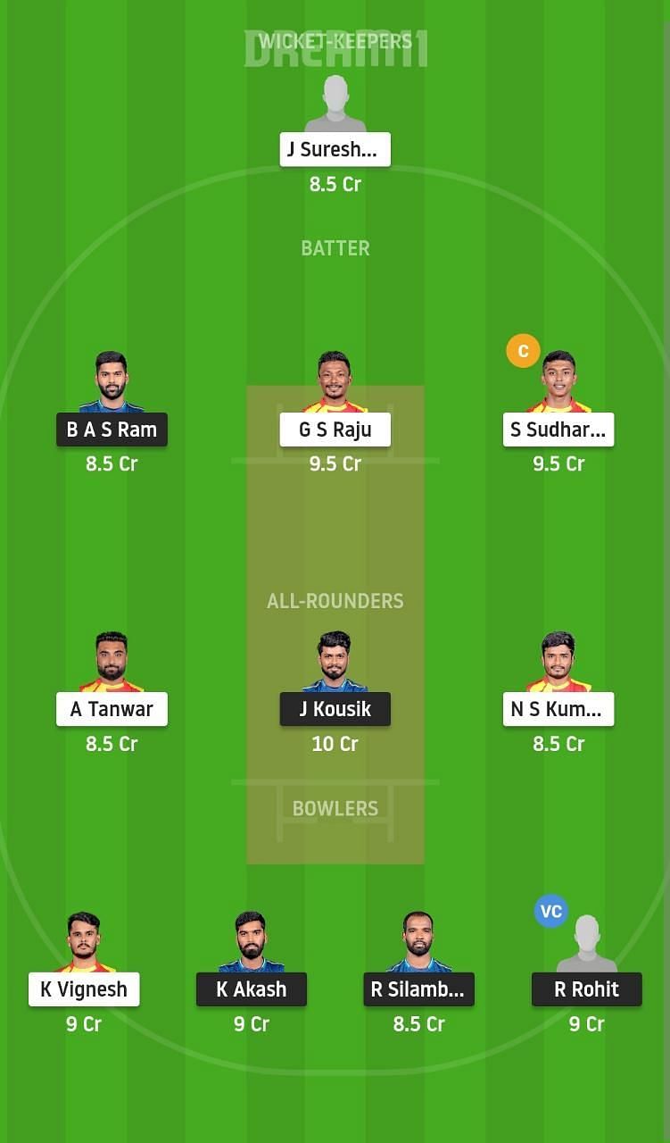 Fantasy Suggestion #2: J Suresh Kumar, G S Raju, S Sudarshan, B A S Ram, J Kousik, N S Kumaran, A Tanwar, R Rohit, K Akash, K Vignesh, R Silambarasan