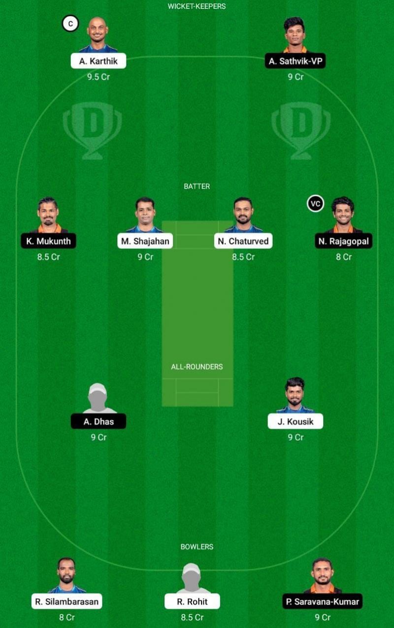 Fantasy Suggestion #1: Arun Karthik, Adithya Ganesh, Anirudh Sita Ram, K Mukunth, N Chaturved, Nidish Rajagopal, Antony Dhas, Jagatheesan Kousik, Sunil Sam, R Silambarasan and Rohit Ramalingam