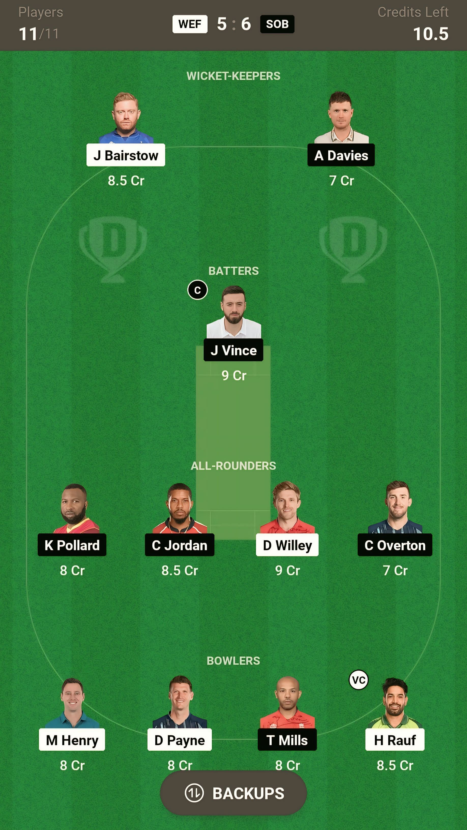 SOB vs WEF match captain and vice-captain choices