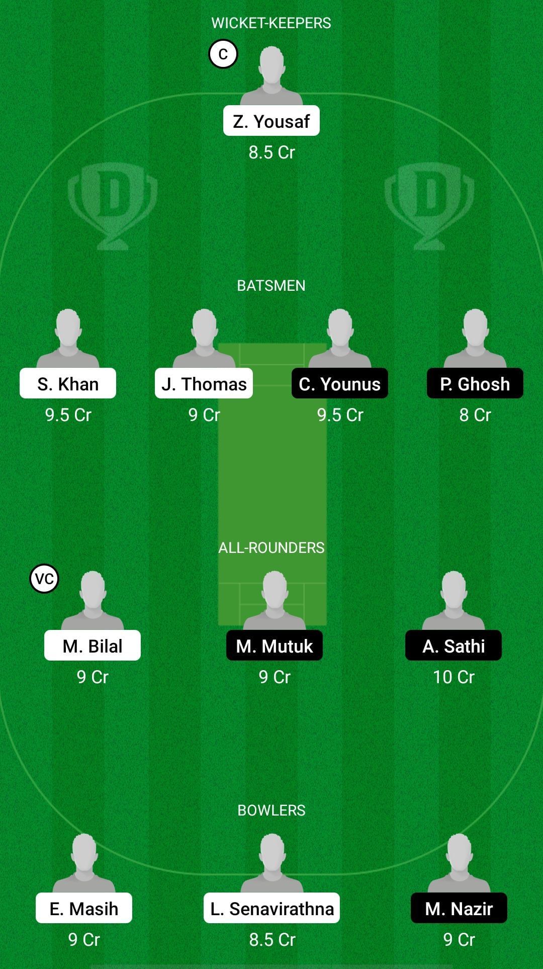 Fantasy Suggestion #1: Zeshan Yousaf, Sumair Khan, Jojo Thomas, Cornelius Younus, Pintu Ghosh, Bilal Khan, Muthu Muthuk, Azeem Sathi, Ezhaq Masih, Lakshitha Senevirathna, Michael Nazir.